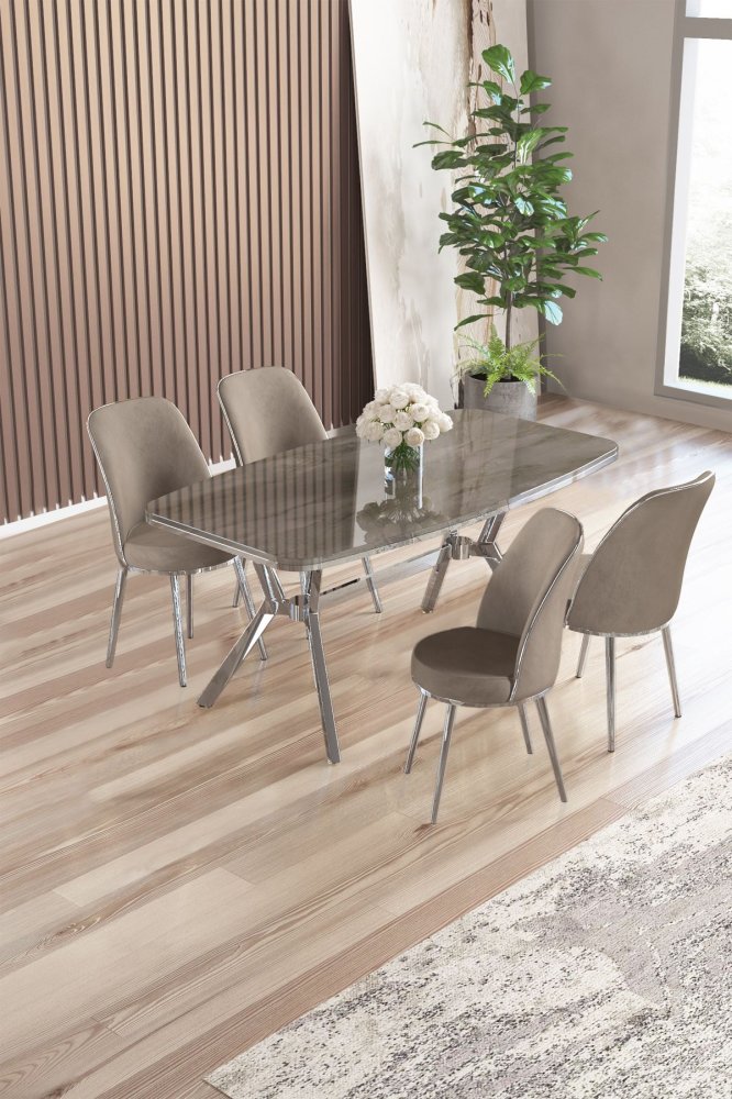 | Specifikacija | Set trpezarijskog stola i stolica (5 delova) Lena Anthracite Chrome Cappuccino 100% LAKOVANI PANEL Metalne nogare Okvir stolice: METAL Materijal: Mekana tkanina Trpezarijski sto: Širina: 160 cm Visina: 75 cm Dubina: 90 cm (1 komad) Stolica: Širina: 45 cm Visina: 91 cm Dubina: 42 cm (4 komada) Visina sedišta: 47 cm Visina nogara: 43 cm 22 DNS pena za leđa / 28 DNS pena za sedenje Broj pakovanja: 4 169 x 99,5 x 10,5 cm / 25,76 kg (1 komad) 37,5 x 80 x 19 cm / 7,58 kg (1 komad) 77 x 58 x 49 cm / 16 kg (1 komad) 63 x 49 x 45 cm / 8 kg (1 komad) |