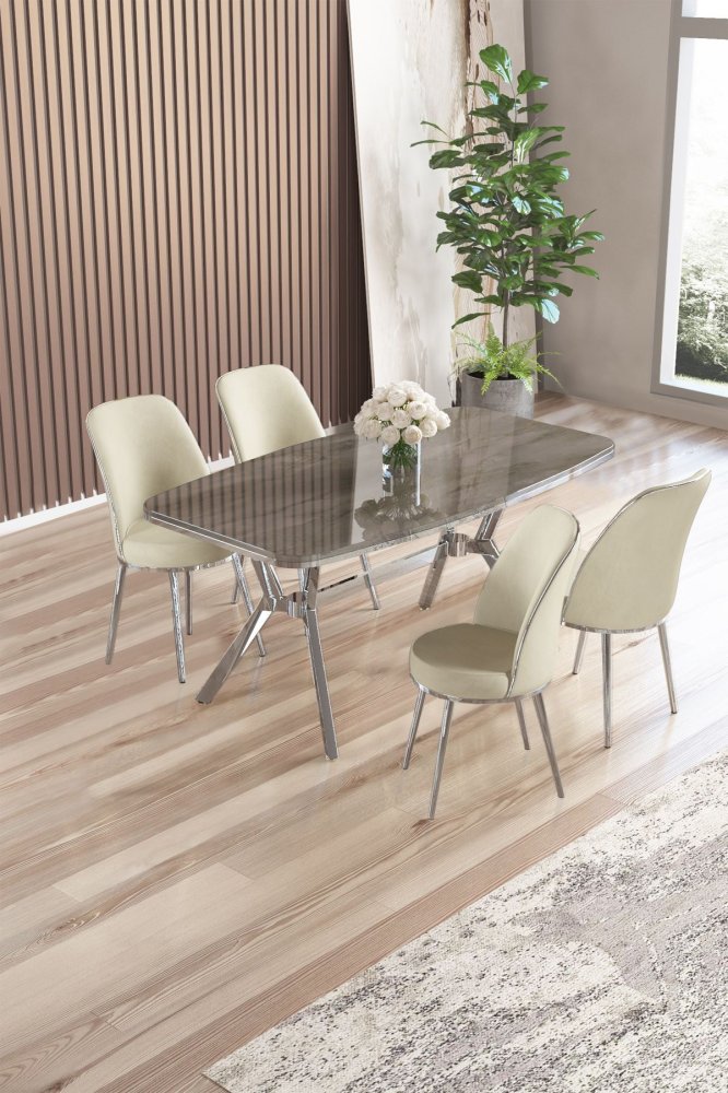 | Specifikacija | Set trpezarijskog stola i stolica (5 delova) Lena Anthracite Chrome Cream 100% LAKOVANI PANEL Metalne nogare Okvir stolice: METAL Materijal: Mekana tkanina Trpezarijski sto: Širina: 160 cm Visina: 75 cm Dubina: 90 cm (1 komad) Stolica: Širina: 45 cm Visina: 91 cm Dubina: 42 cm (4 komada) Visina sedišta: 47 cm Visina nogara: 43 cm 22 DNS pena za leđa / 28 DNS pena za sedenje Broj pakovanja: 4 169 x 99,5 x 10,5 cm / 25,76 kg (1 komad) 37,5 x 80 x 19 cm / 7,58 kg (1 komad) 77 x 58 x 49 cm / 16 kg (1 komad) 63 x 49 x 45 cm / 8 kg (1 komad) |