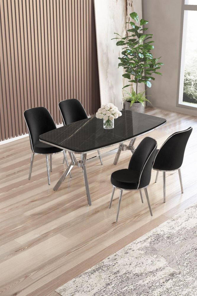 | Specifikacija | Set trpezarijskog stola i stolica (5 delova) Lena Black Marble Chrome Black 100% LAKOVANI PANEL Metalne nogare Okvir stolice: METAL Materijal: Mekana tkanina Trpezarijski sto: Širina: 160 cm Visina: 75 cm Dubina: 90 cm (1 komad) Stolica: Širina: 45 cm Visina: 91 cm Dubina: 42 cm (4 komada) Visina sedišta: 47 cm Visina nogara: 43 cm 22 DNS pena za leđa / 28 DNS pena za sedenje Broj pakovanja: 4 169 x 99,5 x 10,5 cm / 25,76 kg (1 komad) 37,5 x 80 x 19 cm / 7,58 kg (1 komad) 77 x 58 x 49 cm / 16 kg (1 komad) 63 x 49 x 45 cm / 8 kg (1 komad) |