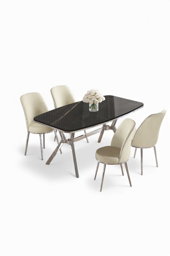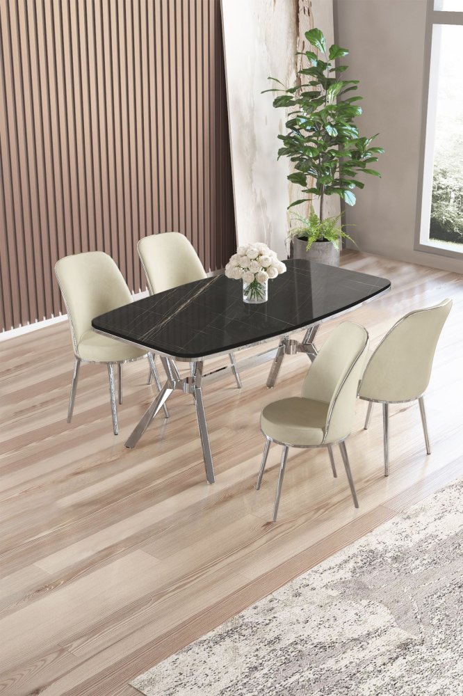 | Specifikacija | Set trpezarijskog stola i stolica (5 delova) Lena Black Marble Chrome Cream 100% LAKOVANI PANEL Metalne nogare Okvir stolice: METAL Materijal: Mekana tkanina Trpezarijski sto: Širina: 160 cm Visina: 75 cm Dubina: 90 cm (1 komad) Stolica: Širina: 45 cm Visina: 91 cm Dubina: 42 cm (4 komada) Visina sedišta: 47 cm Visina nogara: 43 cm 22 DNS pena za leđa / 28 DNS pena za sedenje Broj pakovanja: 4 169 x 99,5 x 10,5 cm / 25,76 kg (1 komad) 37,5 x 80 x 19 cm / 7,58 kg (1 komad) 77 x 58 x 49 cm / 16 kg (1 komad) 63 x 49 x 45 cm / 8 kg (1 komad) |