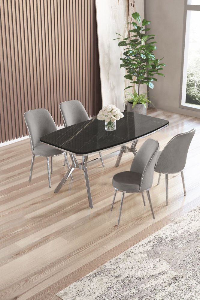 | Specifikacija | Set trpezarijskog stola i stolica (5 delova) Lena Black Marble Chrome Grey 100% LAKOVANI PANEL Metalne nogare Okvir stolice: METAL Materijal: Mekana tkanina Trpezarijski sto: Širina: 160 cm Visina: 75 cm Dubina: 90 cm (1 komad) Stolica: Širina: 45 cm Visina: 91 cm Dubina: 42 cm (4 komada) Visina sedišta: 47 cm Visina nogara: 43 cm 22 DNS pena za leđa / 28 DNS pena za sedenje Broj pakovanja: 4 169 x 99,5 x 10,5 cm / 25,76 kg (1 komad) 37,5 x 80 x 19 cm / 7,58 kg (1 komad) 77 x 58 x 49 cm / 16 kg (1 komad) 63 x 49 x 45 cm / 8 kg (1 komad) |