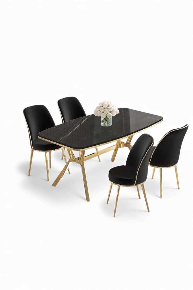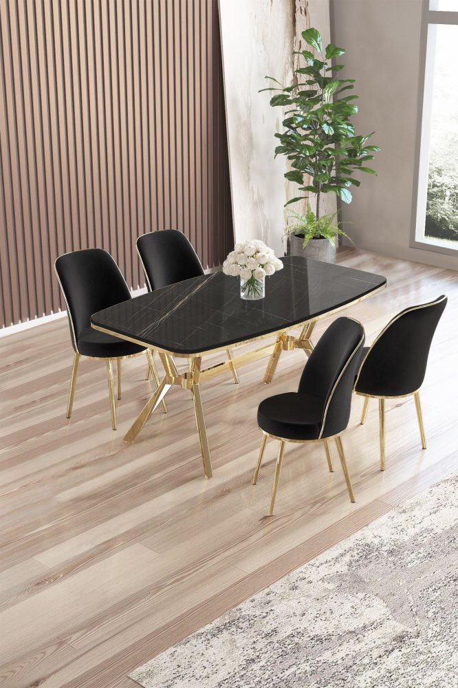| Specifikacija | Set trpezarijskog stola i stolica (5 delova) Lena Black Marble Gold Black 100% LAKOVANI PANEL Metalne nogare Okvir stolice: METAL Materijal: Mekana tkanina Trpezarijski sto: Širina: 160 cm Visina: 75 cm Dubina: 90 cm (1 komad) Stolica: Širina: 45 cm Visina: 91 cm Dubina: 42 cm (4 komada) Visina sedišta: 47 cm Visina nogara: 43 cm 22 DNS pena za leđa / 28 DNS pena za sedenje Broj pakovanja: 4 169 x 99,5 x 10,5 cm / 25,76 kg (1 komad) 37,5 x 80 x 19 cm / 7,58 kg (1 komad) 77 x 58 x 49 cm / 16 kg (1 komad) 63 x 49 x 45 cm / 8 kg (1 komad) |