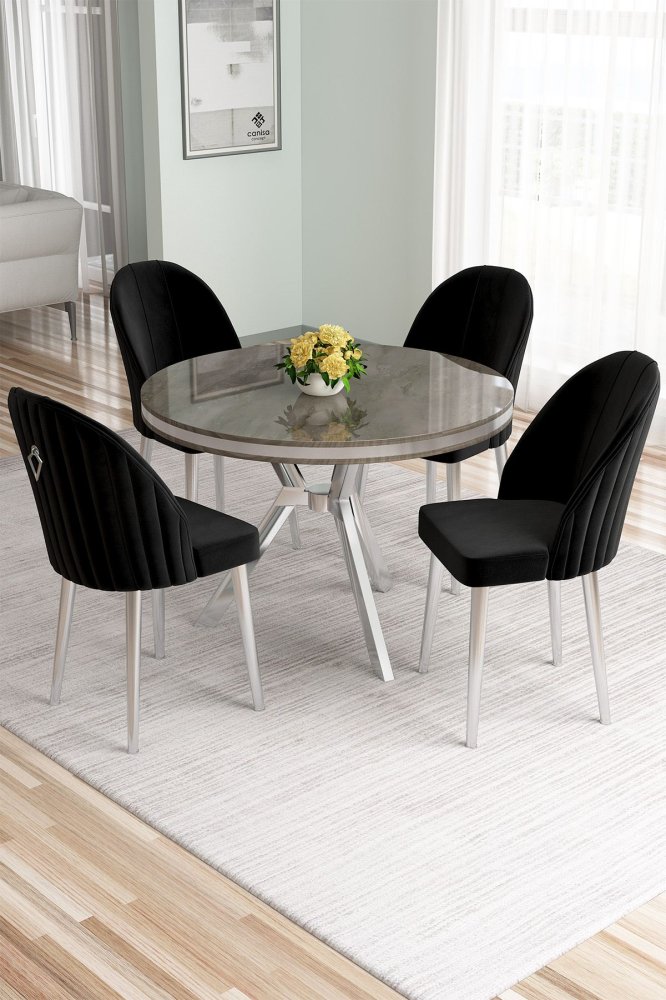 | Specifikacija | Set trpezarijskog stola i stolica (5 delova) Mos Anthracite Chrome Black 100% LAKOVANI PANEL Metalne nogare Okvir stolice: METAL Materijal: Mekana tkanina Trpezarijski sto: Širina: 90 cm Visina: 74 cm Dubina: 90 cm (1 komad) Stolica: Širina: 45 cm Visina: 91 cm Dubina: 42 cm (4 komada) Visina sedišta: 47 cm Visina nogara: 43 cm 22 DNS pena za leđa / 28 DNS pena za sedenje Broj pakovanja: 4 10 x 97 x 97 cm / 13 kg (1 komad) 80 x 18 x 38 cm / 5 kg (1 komad) 85 x 59 x 50 cm / 18 kg (1 komad) 62 x 48 x 56 cm / 10 kg (1 komad) |