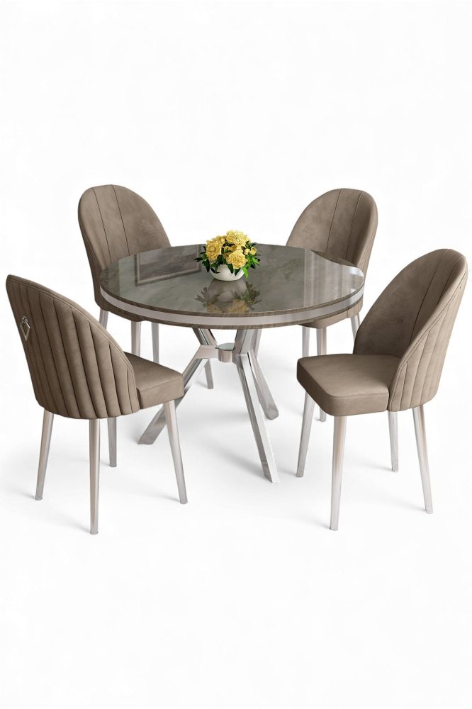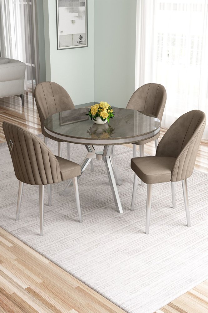 | Specifikacija | Set trpezarijskog stola i stolica (5 delova) Mos Anthracite Chrome Cappuccino 100% LAKOVANI PANEL Metalne nogare Okvir stolice: METAL Materijal: Mekana tkanina Trpezarijski sto: Širina: 90 cm Visina: 74 cm Dubina: 90 cm (1 komad) Stolica: Širina: 45 cm Visina: 91 cm Dubina: 42 cm (4 komada) Visina sedišta: 47 cm Visina nogara: 43 cm 22 DNS pena za leđa / 28 DNS pena za sedenje Broj pakovanja: 4 10 x 97 x 97 cm / 13 kg (1 komad) 80 x 18 x 38 cm / 5 kg (1 komad) 85 x 59 x 50 cm / 18 kg (1 komad) 62 x 48 x 56 cm / 10 kg (1 komad) |