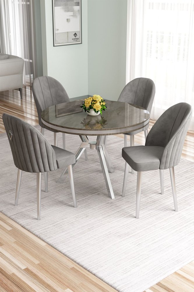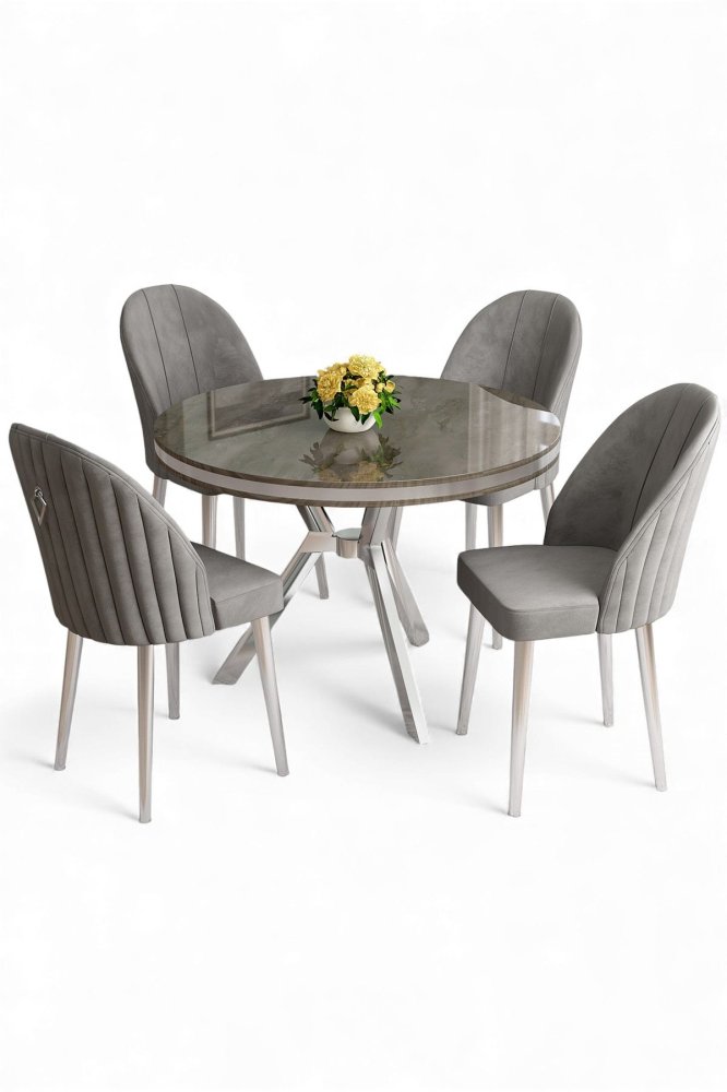 | Specifikacija | Set trpezarijskog stola i stolica (5 delova) Mos Anthracite Chrome Grey 100% LAKOVANI PANEL Metalne nogare Okvir stolice: METAL Materijal: Mekana tkanina Trpezarijski sto: Širina: 90 cm Visina: 74 cm Dubina: 90 cm (1 komad) Stolica: Širina: 45 cm Visina: 91 cm Dubina: 42 cm (4 komada) Visina sedišta: 47 cm Visina nogara: 43 cm 22 DNS pena za leđa / 28 DNS pena za sedenje Broj pakovanja: 4 10 x 97 x 97 cm / 13 kg (1 komad) 80 x 18 x 38 cm / 5 kg (1 komad) 85 x 59 x 50 cm / 18 kg (1 komad) 62 x 48 x 56 cm / 10 kg (1 komad) |