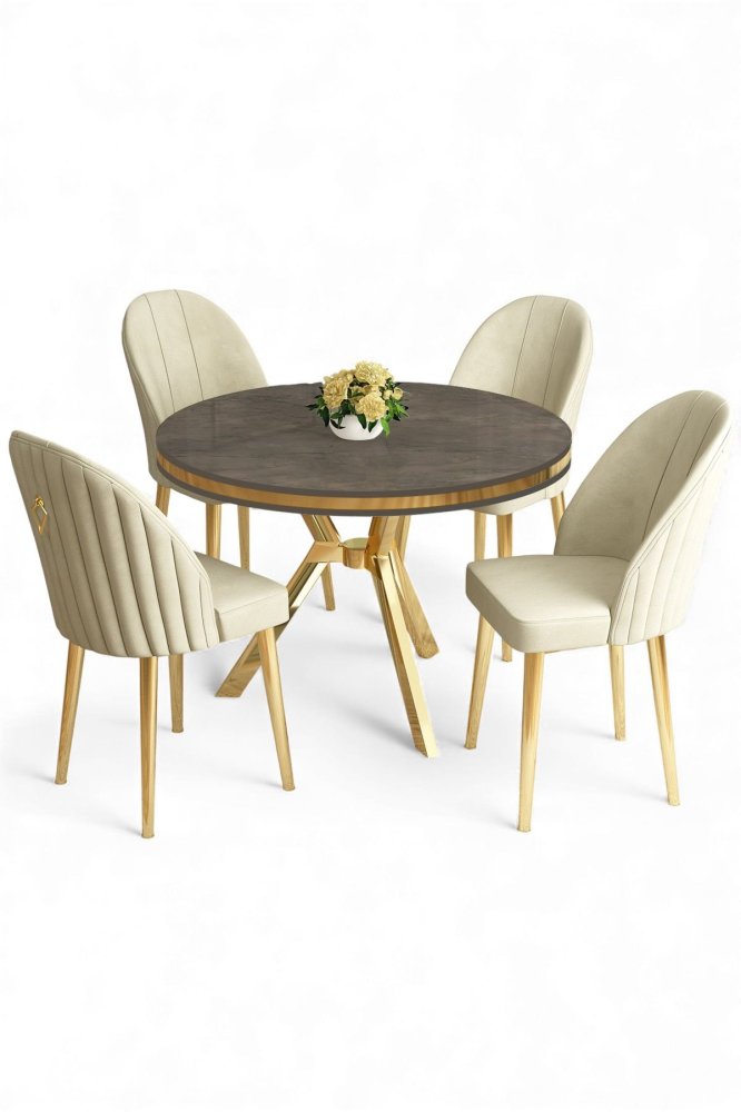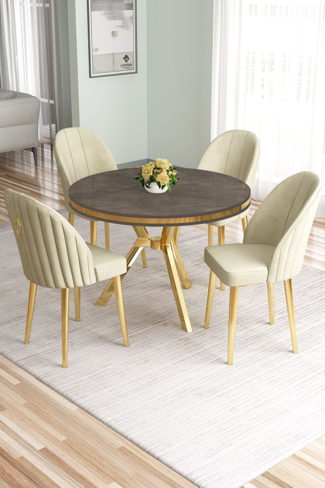 | Specifikacija | Set trpezarijskog stola i stolica (5 delova) Mos Anthracite Gold Cream 100% LAKOVANI PANEL Metalne nogare Okvir stolice: METAL Materijal: Mekana tkanina Trpezarijski sto: Širina: 90 cm Visina: 74 cm Dubina: 90 cm (1 komad) Stolica: Širina: 45 cm Visina: 91 cm Dubina: 42 cm (4 komada) Visina sedišta: 47 cm Visina nogara: 43 cm 22 DNS pena za leđa / 28 DNS pena za sedenje Broj pakovanja: 4 10 x 97 x 97 cm / 13 kg (1 komad) 80 x 18 x 38 cm / 5 kg (1 komad) 85 x 59 x 50 cm / 18 kg (1 komad) 62 x 48 x 56 cm / 10 kg (1 komad) |