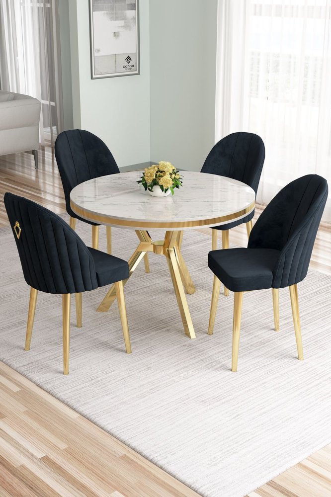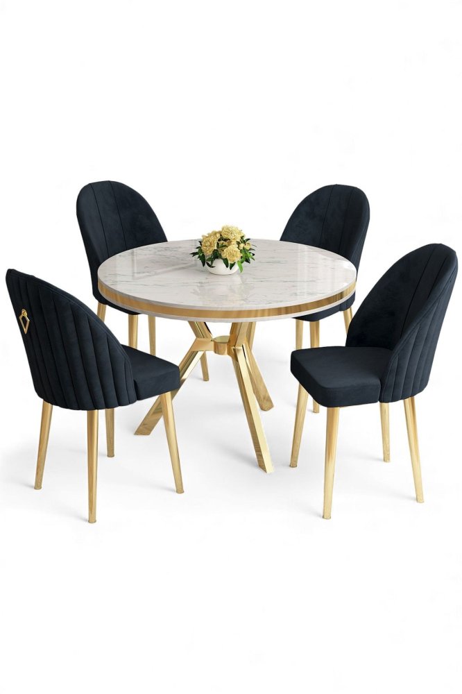 | Specifikacija | Set trpezarijskog stola i stolica (5 delova) Mos White Marble Gold Anthracite 100% LAKOVANI PANEL Metalne nogare Okvir stolice: METAL Materijal: Mekana tkanina Trpezarijski sto: Širina: 90 cm Visina: 74 cm Dubina: 90 cm (1 komad) Stolica: Širina: 45 cm Visina: 91 cm Dubina: 42 cm (4 komada) Visina sedišta: 47 cm Visina nogara: 43 cm 22 DNS pena za leđa / 28 DNS pena za sedenje Broj pakovanja: 4 10 x 97 x 97 cm / 13 kg (1 komad) 80 x 18 x 38 cm / 5 kg (1 komad) 85 x 59 x 50 cm / 18 kg (1 komad) 62 x 48 x 56 cm / 10 kg (1 komad) |