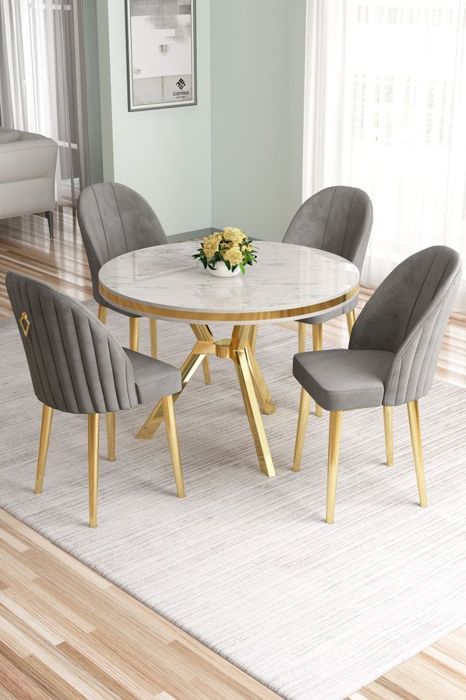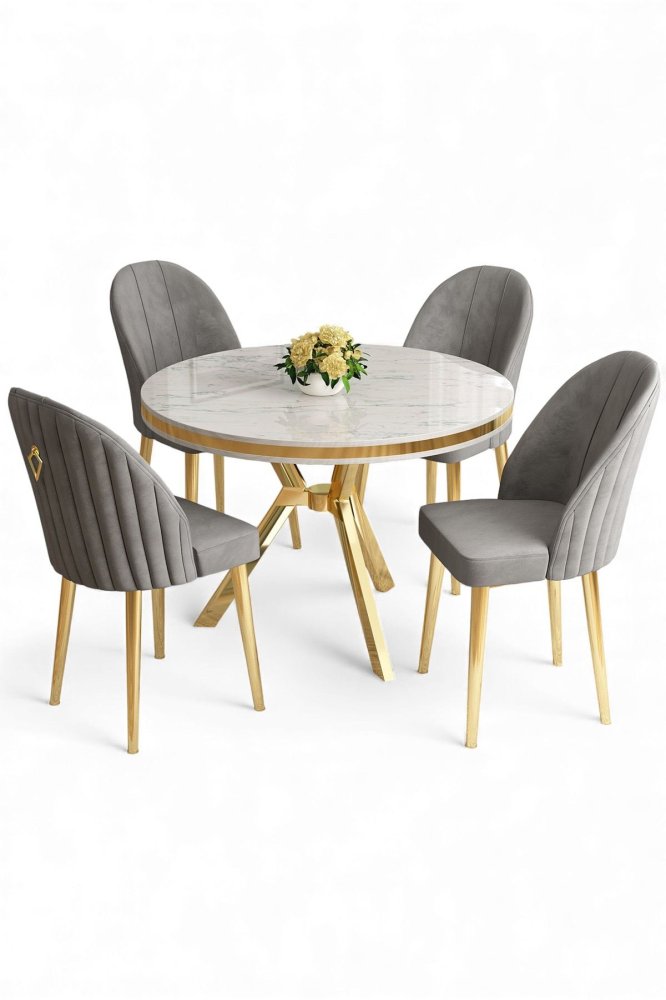| Specifikacija | Set trpezarijskog stola i stolica (5 delova) Mos White Marble Gold Grey 100% LAKOVANI PANEL Metalne nogare Okvir stolice: METAL Materijal: Mekana tkanina Trpezarijski sto: Širina: 90 cm Visina: 74 cm Dubina: 90 cm (1 komad) Stolica: Širina: 45 cm Visina: 91 cm Dubina: 42 cm (4 komada) Visina sedišta: 47 cm Visina nogara: 43 cm 22 DNS pena za leđa / 28 DNS pena za sedenje Broj pakovanja: 4 10 x 97 x 97 cm / 13 kg (1 komad) 80 x 18 x 38 cm / 5 kg (1 komad) 85 x 59 x 50 cm / 18 kg (1 komad) 62 x 48 x 56 cm / 10 kg (1 komad) |