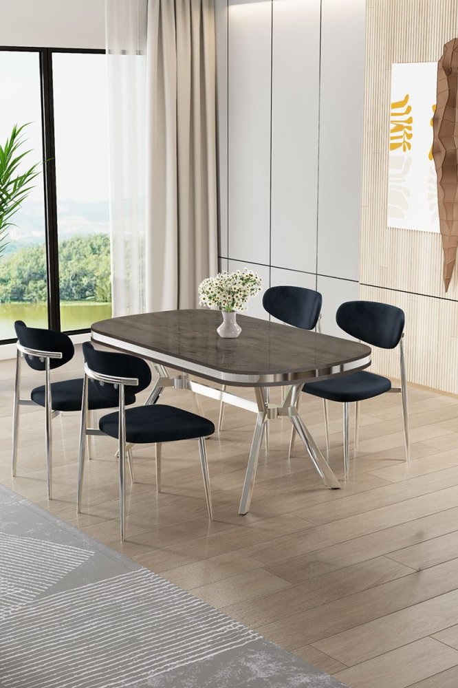 | Specifikacija | Set trpezarijskog stola i stolica (5 delova) Olya Anthracite Chrome 100% LAKOVANI PANEL Metalne nogare Okvir stolice: ŠPERPLOČA / METAL Materijal: Mekana tkanina Trpezarijski sto: Širina: 168 cm Visina: 75 cm Dubina: 90 cm (1 komad) Stolica: Širina: 48 cm Visina: 84 cm Dubina: 49 cm (4 komada) Visina sedišta: 48 cm 22 DNS pena za leđa / 28 DNS pena za sedenje Broj pakovanja: 3 173 x 9 x 95 cm / 25 kg (1 komad) 37,5 x 80 x 19 cm / 7,58 kg (1 komad) 55 x 115 x 68 cm / 34 kg (1 komad) |