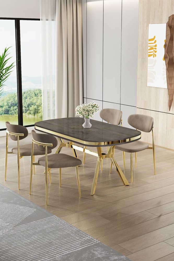 | Specifikacija | Set trpezarijskog stola i stolica (5 delova) Olya Anthracite Gold Cappuccino 100% LAKOVANI PANEL Metalne nogare Okvir stolice: ŠPERPLOČA / METAL Materijal: Mekana tkanina Trpezarijski sto: Širina: 168 cm Visina: 75 cm Dubina: 90 cm (1 komad) Stolica: Širina: 48 cm Visina: 84 cm Dubina: 49 cm (4 komada) Visina sedišta: 48 cm 22 DNS pena za leđa / 28 DNS pena za sedenje Broj pakovanja: 3 173 x 9 x 95 cm / 25 kg (1 komad) 37,5 x 80 x 19 cm / 7,58 kg (1 komad) 55 x 115 x 68 cm / 34 kg (1 komad) |