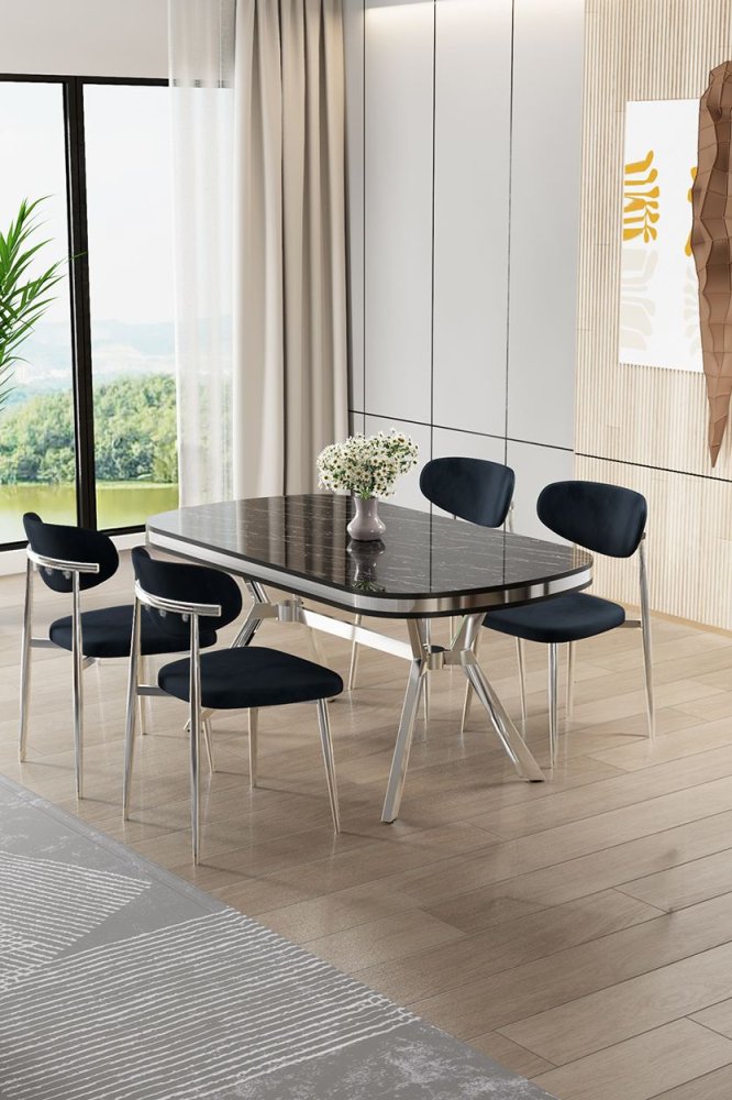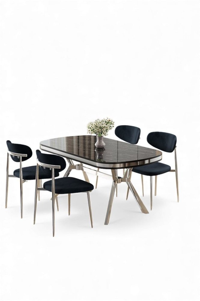| Specifikacija | Set trpezarijskog stola i stolica (5 delova) Olya Black Marble Chrome Anthracite 100% LAKOVANI PANEL Metalne nogare Okvir stolice: ŠPERPLOČA / METAL Materijal: Mekana tkanina Trpezarijski sto: Širina: 168 cm Visina: 75 cm Dubina: 90 cm (1 komad) Stolica: Širina: 48 cm Visina: 84 cm Dubina: 49 cm (4 komada) Visina sedišta: 48 cm 22 DNS pena za leđa / 28 DNS pena za sedenje Broj pakovanja: 3 173 x 9 x 95 cm / 25 kg (1 komad) 37,5 x 80 x 19 cm / 7,58 kg (1 komad) 55 x 115 x 68 cm / 34 kg (1 komad) |
