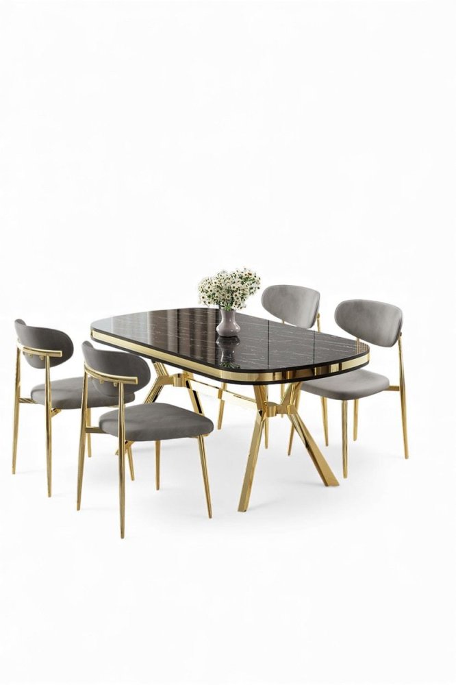 | Specifikacija | Set trpezarijskog stola i stolica (5 delova) Olya Black Marble Gold Grey 100% LAKOVANI PANEL Metalne nogare Okvir stolice: ŠPERPLOČA / METAL Materijal: Mekana tkanina Trpezarijski sto: Širina: 168 cm Visina: 75 cm Dubina: 90 cm (1 komad) Stolica: Širina: 48 cm Visina: 84 cm Dubina: 49 cm (4 komada) Visina sedišta: 48 cm 22 DNS pena za leđa / 28 DNS pena za sedenje Broj pakovanja: 3 173 x 9 x 95 cm / 25 kg (1 komad) 37,5 x 80 x 19 cm / 7,58 kg (1 komad) 55 x 115 x 68 cm / 34 kg (1 komad) |