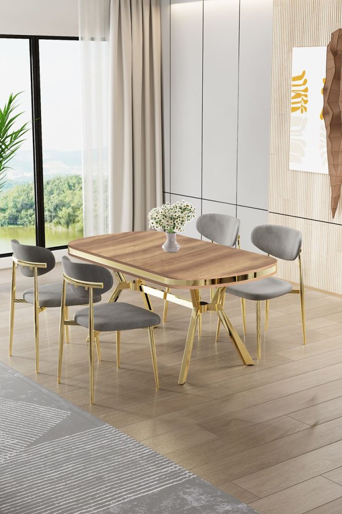 | Specifikacija | Set trpezarijskog stola i stolica (5 delova) Olya Hrast Gold Grey 100% LAKOVANI PANEL Metalne nogare Okvir stolice: ŠPERPLOČA / METAL Materijal: Mekana tkanina Trpezarijski sto: Širina: 168 cm Visina: 75 cm Dubina: 90 cm (1 komad) Stolica: Širina: 48 cm Visina: 84 cm Dubina: 49 cm (4 komada) Visina sedišta: 48 cm 22 DNS pena za leđa / 28 DNS pena za sedenje Broj pakovanja: 3 173 x 9 x 95 cm / 25 kg (1 komad) 37,5 x 80 x 19 cm / 7,58 kg (1 komad) 55 x 115 x 68 cm / 34 kg (1 komad) |