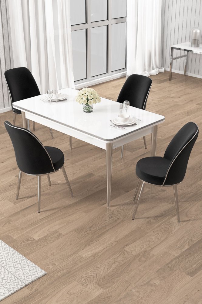 | Specifikacija | Set trpezarijskog stola i stolica (5 delova) Rewa White Chrome Black 100% Iverica sa melaminskim premazom Metalne nogare Okvir stolice: METAL Materijal: Mekana tkanina Trpezarijski sto: Širina: 110 cm Visina: 76 cm Dubina: 70 cm (1 komad) Stolica: Širina: 45 cm Visina: 91 cm Dubina: 42 cm (4 komada) Visina sedišta: 47 cm Visina nogara: 43 cm 22 DNS pena za leđa / 28 DNS pena za sedenje Broj pakovanja: 3 76,5 x 115 x 10 cm / 19,06 kg (1 komad) 77 x 58 x 49 cm / 16 kg (1 komad) 63 x 49 x 45 cm / 8 kg (1 komad) |