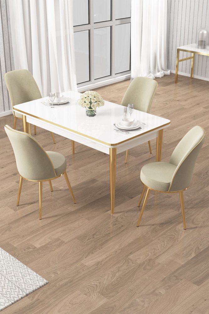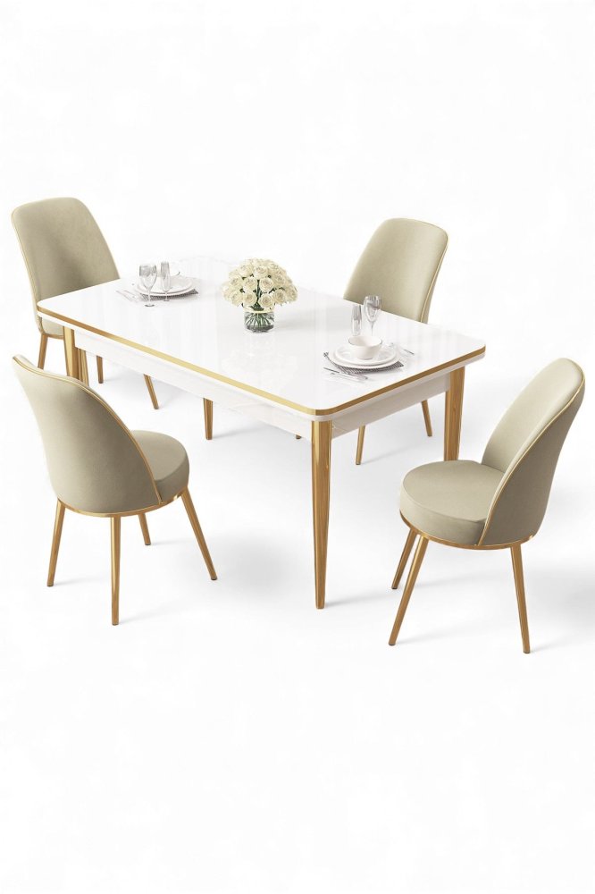 | Specifikacija | Set trpezarijskog stola i stolica (5 delova) Rewa White Gold Cream 100% Iverica sa melaminskim premazom Metalne nogare Okvir stolice: METAL Materijal: Mekana tkanina Trpezarijski sto: Širina: 110 cm Visina: 76 cm Dubina: 70 cm (1 komad) Stolica: Širina: 45 cm Visina: 91 cm Dubina: 42 cm (4 komada) Visina sedišta: 47 cm Visina nogara: 43 cm 22 DNS pena za leđa / 28 DNS pena za sedenje Broj pakovanja: 3 76,5 x 115 x 10 cm / 19,06 kg (1 komad) 77 x 58 x 49 cm / 16 kg (1 komad) 63 x 49 x 45 cm / 8 kg (1 komad) |