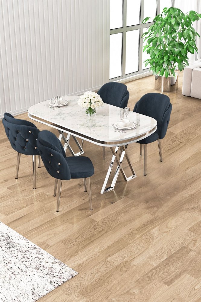 | Specifikacija | Set trpezarijskog stola i stolica (5 delova) Zae White Marble Chrome Anthracite 100% LAKOVANI PANEL Metalne nogare Okvir stolice: ŠPERPLOČA / METAL Materijal: Mekana tkanina Trpezarijski sto: Širina: 168 cm Visina: 76 cm Dubina: 60 cm (1 komad) Stolica: Širina: 45 cm Visina: 82 cm Dubina: 46 cm (4 komada) Visina sedišta: 48 cm 22 DNS pena za leđa / 28 DNS pena za sedenje Broj pakovanja: 4 173 x 9 x 95 cm / 25 kg (1 komad) 11 x 75 x 62 cm / 6 kg (1 komad) 85 x 59 x 50 cm / 26 kg (1 komad) 62 x 48 x 56 cm / 10 kg (1 komad) |