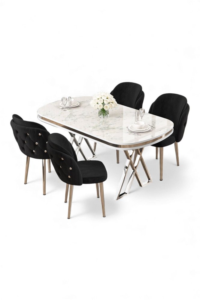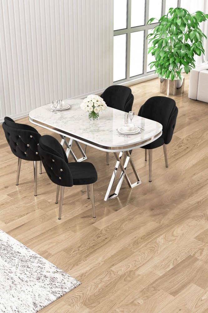 | Specifikacija | Set trpezarijskog stola i stolica (5 delova) Zae White Marble Chrome Black 100% LAKOVANI PANEL Metalne nogare Okvir stolice: ŠPERPLOČA / METAL Materijal: Mekana tkanina Trpezarijski sto: Širina: 168 cm Visina: 76 cm Dubina: 60 cm (1 komad) Stolica: Širina: 45 cm Visina: 82 cm Dubina: 46 cm (4 komada) Visina sedišta: 48 cm 22 DNS pena za leđa / 28 DNS pena za sedenje Broj pakovanja: 4 173 x 9 x 95 cm / 25 kg (1 komad) 11 x 75 x 62 cm / 6 kg (1 komad) 85 x 59 x 50 cm / 26 kg (1 komad) 62 x 48 x 56 cm / 10 kg (1 komad) |