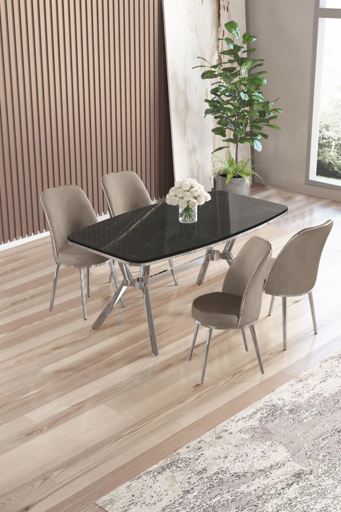 | Specifikacija | Set trpezarijskog stola i stolica (5 delova)Lena Black Marble Chrome Cappuccino 100% LAKOVANI PANEL Metalne nogare Okvir stolice: METAL Materijal: Mekana tkanina Trpezarijski sto: Širina: 160 cm Visina: 75 cm Dubina: 90 cm (1 komad) Stolica: Širina: 45 cm Visina: 91 cm Dubina: 42 cm (4 komada) Visina sedišta: 47 cm Visina nogara: 43 cm 22 DNS pena za leđa / 28 DNS pena za sedenje Broj pakovanja: 4 169 x 99,5 x 10,5 cm / 25,76 kg (1 komad) 37,5 x 80 x 19 cm / 7,58 kg (1 komad) 77 x 58 x 49 cm / 16 kg (1 komad) 63 x 49 x 45 cm / 8 kg (1 komad) |