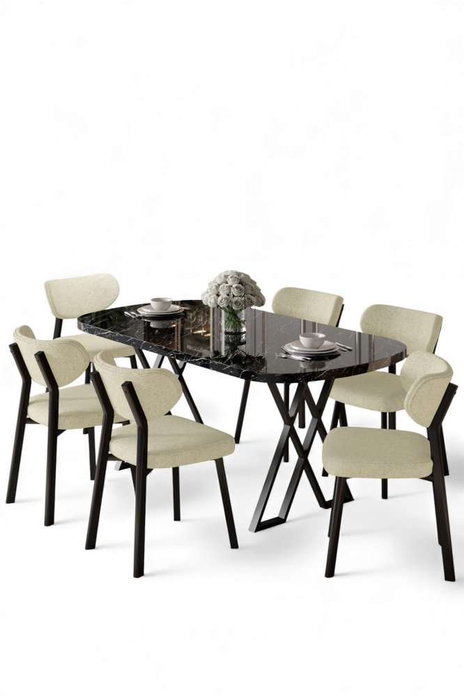 | Specifikacija | Set trpezarijskog stola i stolica (7 delova) Axton Black Marble Cream 100% MDF Metalne nogare Okvir stolice: Šperploča / METAL Materijal: Bukle Trpezarijski sto: Širina: 168 cm Visina: 76 cm Dubina: 90 cm (1 komad) Stolica: Širina: 46 cm Visina: 85 cm Dubina: 45 cm (6 komada) Visina sedišta: 49 cm 22 DNS pena za leđa / 28 DNS pena za sedenje Broj pakovanja: 3 173 x 9 x 95 cm / 25 kg (1 komad) 11 x 75 x 62 cm / 6 kg (1 komad) 37 x 104 x 77 cm / 44 kg (1 komad) |