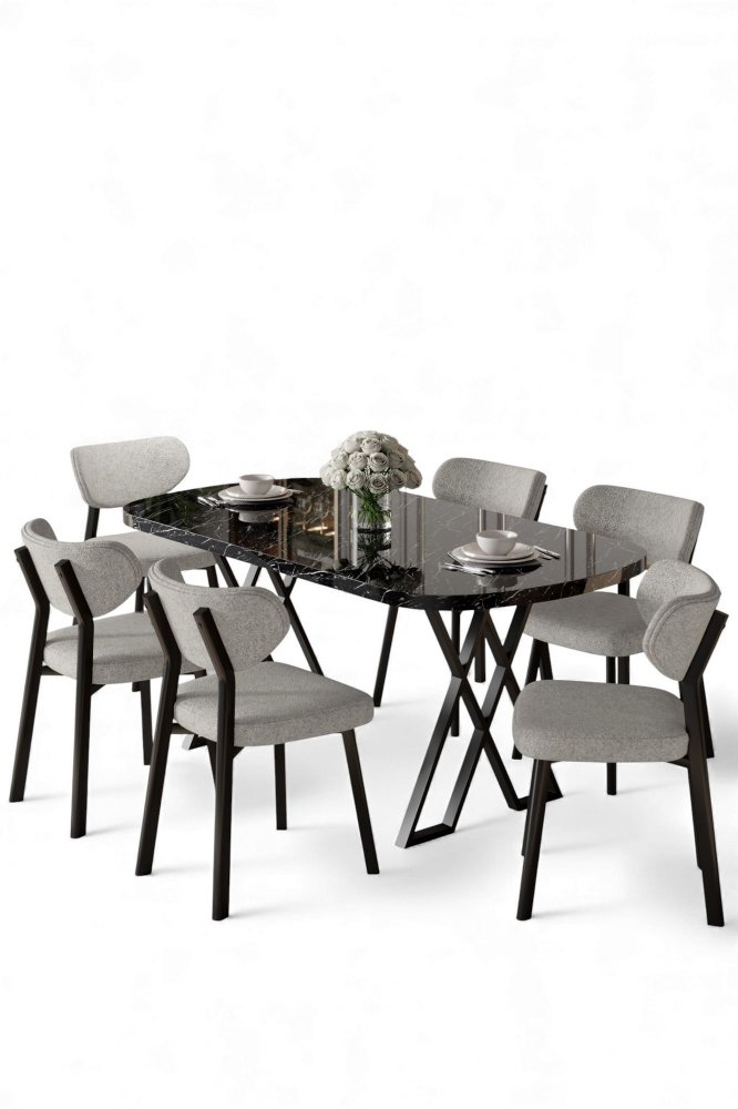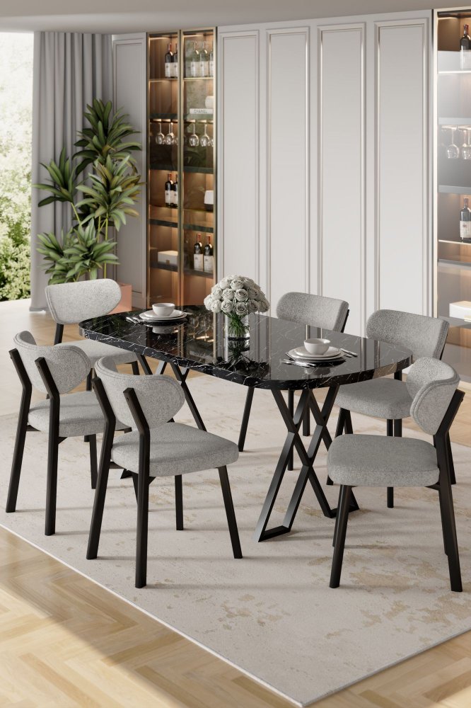 | Specifikacija | Set trpezarijskog stola i stolica (7 delova) Axton Black Marble Grey 100% MDF Metalne nogare Okvir stolice: Šperploča / METAL Materijal: Bukle Trpezarijski sto: Širina: 168 cm Visina: 76 cm Dubina: 90 cm (1 komad) Stolica: Širina: 46 cm Visina: 85 cm Dubina: 45 cm (6 komada) Visina sedišta: 49 cm 22 DNS pena za leđa / 28 DNS pena za sedenje Broj pakovanja: 3 173 x 9 x 95 cm / 25 kg (1 komad) 11 x 75 x 62 cm / 6 kg (1 komad) 37 x 104 x 77 cm / 44 kg (1 komad) |