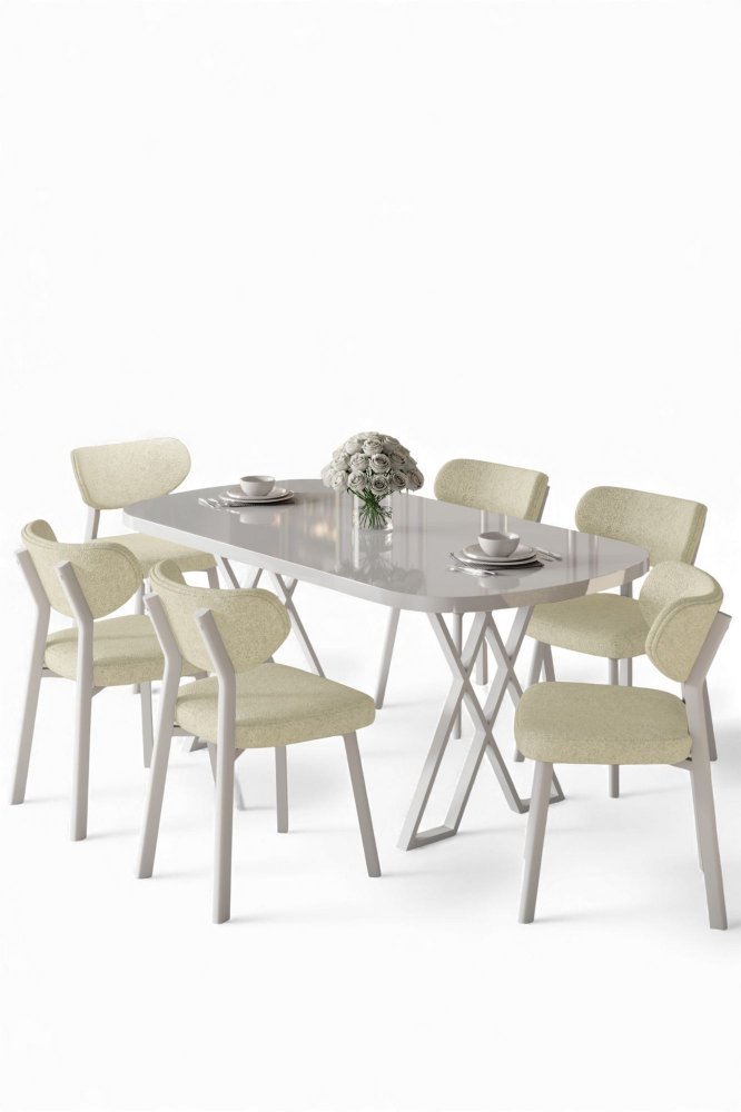 | Specifikacija | Set trpezarijskog stola i stolica (7 delova) Axton White Cream 100% MDF Metalne nogare Okvir stolice: Šperploča / METAL Materijal: Bukle Trpezarijski sto: Širina: 168 cm Visina: 76 cm Dubina: 90 cm (1 komad) Stolica: Širina: 46 cm Visina: 85 cm Dubina: 45 cm (6 komada) Visina sedišta: 49 cm 22 DNS pena za leđa / 28 DNS pena za sedenje Broj pakovanja: 3 173 x 9 x 95 cm / 25 kg (1 komad) 11 x 75 x 62 cm / 6 kg (1 komad) 37 x 104 x 77 cm / 44 kg (1 komad) |
