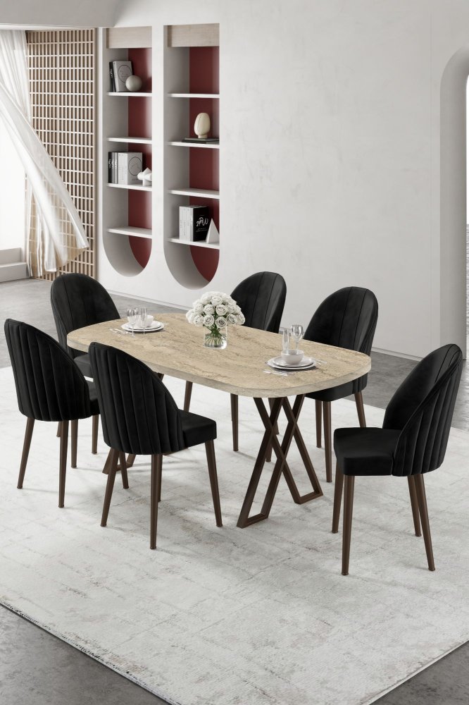 | Specifikacija | Set trpezarijskog stola i stolica (7 delova) Kaye Travertine Black 100% MDF Metalne nogare Ram stolice: METAL Materijal: Mekana tkanina Trpezarijski sto: Širina: 168 cm Visina: 76 cm Dubina: 90 cm (1 komad) Stolica: Širina: 44 cm Visina: 90 cm Dubina: 42 cm (6 komada) Visina sedišta: 47 cm Visina nogara: 43 cm 22 DNS pena za leđa / 28 DNS pena za sedenje Broj pakovanja: 5 173 x 9 x 95 cm / 25 kg (1 komad) 11 x 75 x 62 cm / 6 kg (1 komad) 85 x 59 x 50 cm / 18 kg (1 komad) 62 x 48 x 56 cm / 10 kg (1 komad) 62 x 48 x 56 cm / 14 kg (1 komad) |