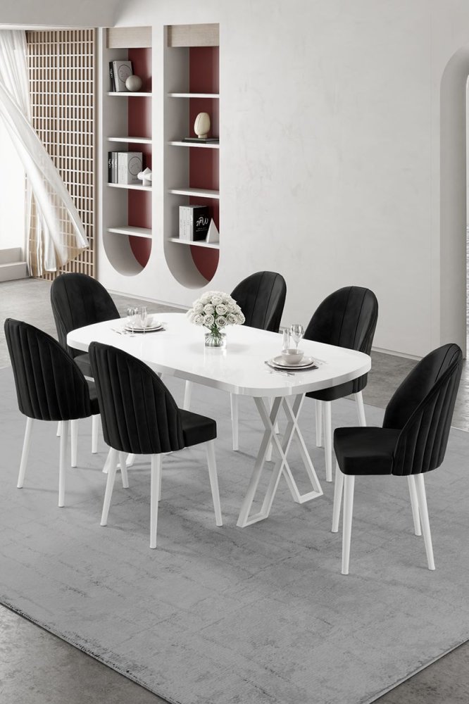 | Specifikacija | Set trpezarijskog stola i stolica (7 delova) Kaye White Black 100% MDF Metalne nogare Ram stolice: METAL Materijal: Mekana tkanina Trpezarijski sto: Širina: 168 cm Visina: 76 cm Dubina: 90 cm (1 komad) Stolica: Širina: 44 cm Visina: 90 cm Dubina: 42 cm (6 komada) Visina sedišta: 47 cm Visina nogara: 43 cm 22 DNS pena za leđa / 28 DNS pena za sedenje Broj pakovanja: 5 173 x 9 x 95 cm / 25 kg (1 komad) 11 x 75 x 62 cm / 6 kg (1 komad) 85 x 59 x 50 cm / 18 kg (1 komad) 62 x 48 x 56 cm / 10 kg (1 komad) 62 x 48 x 56 cm / 14 kg (1 komad) |