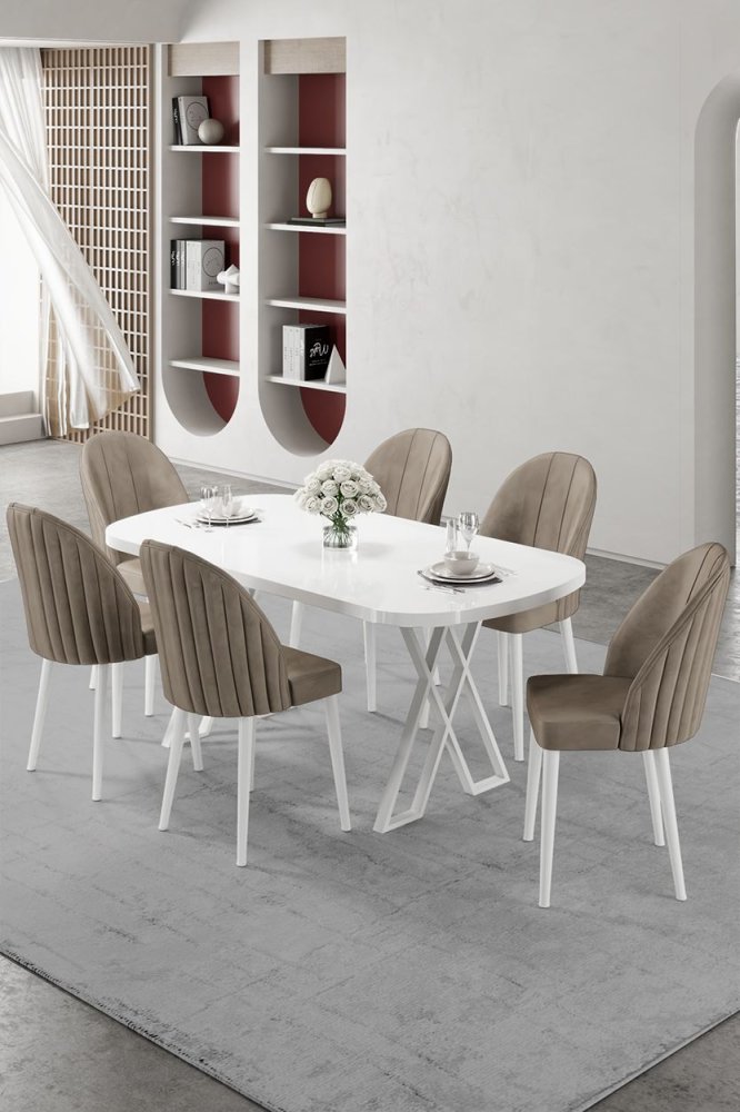 | Specifikacija | Set trpezarijskog stola i stolica (7 delova) Kaye White Cappuccino 100% MDF Metalne nogare Ram stolice: METAL Materijal: Mekana tkanina Trpezarijski sto: Širina: 168 cm Visina: 76 cm Dubina: 90 cm (1 komad) Stolica: Širina: 44 cm Visina: 90 cm Dubina: 42 cm (6 komada) Visina sedišta: 47 cm Visina nogara: 43 cm 22 DNS pena za leđa / 28 DNS pena za sedenje Broj pakovanja: 5 173 x 9 x 95 cm / 25 kg (1 komad) 11 x 75 x 62 cm / 6 kg (1 komad) 85 x 59 x 50 cm / 18 kg (1 komad) 62 x 48 x 56 cm / 10 kg (1 komad) 62 x 48 x 56 cm / 14 kg (1 komad) |