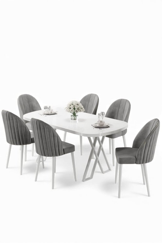 | Specifikacija | Set trpezarijskog stola i stolica (7 delova) Kaye White Grey 100% MDF Metalne nogare Ram stolice: METAL Materijal: Mekana tkanina Trpezarijski sto: Širina: 168 cm Visina: 76 cm Dubina: 90 cm (1 komad) Stolica: Širina: 44 cm Visina: 90 cm Dubina: 42 cm (6 komada) Visina sedišta: 47 cm Visina nogara: 43 cm 22 DNS pena za leđa / 28 DNS pena za sedenje Broj pakovanja: 5 173 x 9 x 95 cm / 25 kg (1 komad) 11 x 75 x 62 cm / 6 kg (1 komad) 85 x 59 x 50 cm / 18 kg (1 komad) 62 x 48 x 56 cm / 10 kg (1 komad) 62 x 48 x 56 cm / 14 kg (1 komad) |