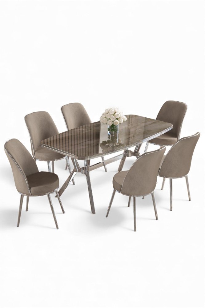 | Specifikacija | Set trpezarijskog stola i stolica (7 delova) Lena Anthracite Chrome Cappuccino 100% LAKOVANI PANEL Metalne nogare Okvir stolice: METAL Materijal: Mekana tkanina Trpezarijski sto: Širina: 160 cm Visina: 75 cm Dubina: 90 cm (1 komad) Stolica: Širina: 45 cm Visina: 91 cm Dubina: 42 cm (6 komada) Visina sedišta: 47 cm Visina nogara: 43 cm 22 DNS pena za leđa / 28 DNS pena za sedenje Broj pakovanja: 4 169 x 99,5 x 10,5 cm / 25,76 kg (1 komad) 37,5 x 80 x 19 cm / 7,58 kg (1 komad) 85 x 59 x 50 cm / 24 kg (1 komad) 62 x 48 x 56 cm / 12,5 kg (1 komad) |