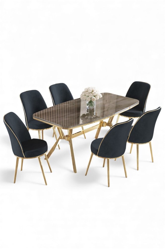| Specifikacija | Set trpezarijskog stola i stolica (7 delova) Lena Anthracite Gold 100% LAKOVANI PANEL Metalne nogare Okvir stolice: METAL Materijal: Mekana tkanina Trpezarijski sto: Širina: 160 cm Visina: 75 cm Dubina: 90 cm (1 komad) Stolica: Širina: 45 cm Visina: 91 cm Dubina: 42 cm (6 komada) Visina sedišta: 47 cm Visina nogara: 43 cm 22 DNS pena za leđa / 28 DNS pena za sedenje Broj pakovanja: 4 169 x 99,5 x 10,5 cm / 25,76 kg (1 komad) 37,5 x 80 x 19 cm / 7,58 kg (1 komad) 85 x 59 x 50 cm / 24 kg (1 komad) 62 x 48 x 56 cm / 12,5 kg (1 komad) |