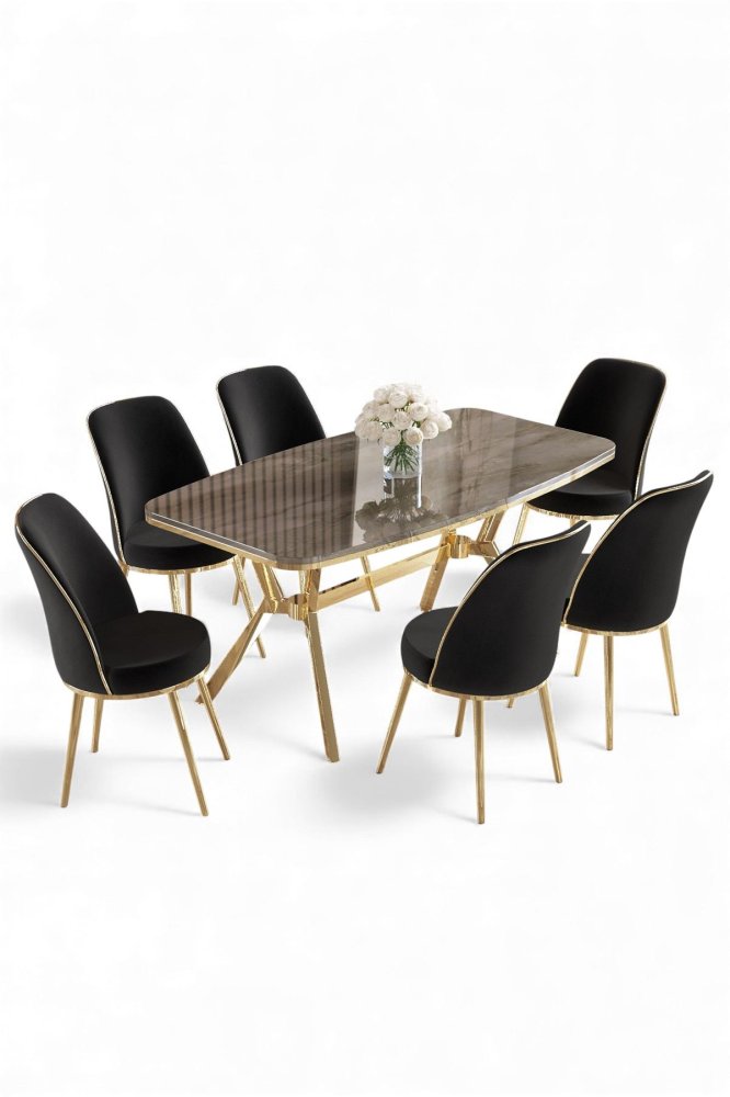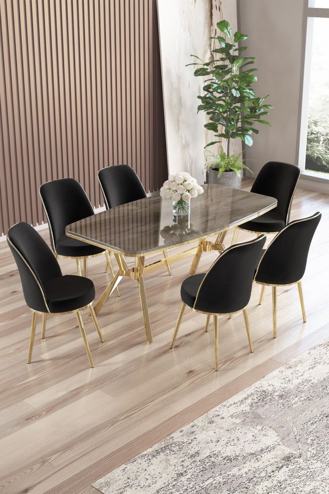 | Specifikacija | Set trpezarijskog stola i stolica (7 delova) Lena Anthracite Gold Black 100% LAKOVANI PANEL Metalne nogare Okvir stolice: METAL Materijal: Mekana tkanina Trpezarijski sto: Širina: 160 cm Visina: 75 cm Dubina: 90 cm (1 komad) Stolica: Širina: 45 cm Visina: 91 cm Dubina: 42 cm (6 komada) Visina sedišta: 47 cm Visina nogara: 43 cm 22 DNS pena za leđa / 28 DNS pena za sedenje Broj pakovanja: 4 169 x 99,5 x 10,5 cm / 25,76 kg (1 komad) 37,5 x 80 x 19 cm / 7,58 kg (1 komad) 85 x 59 x 50 cm / 24 kg (1 komad) 62 x 48 x 56 cm / 12,5 kg (1 komad) |