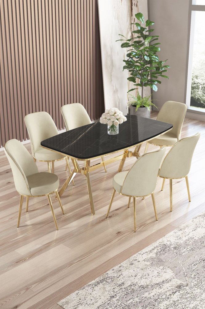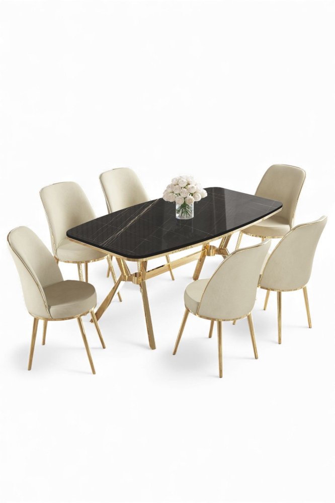 | Specifikacija | Set trpezarijskog stola i stolica (7 delova) Lena Black Marble Gold Cream 100% LAKOVANI PANEL Metalne nogare Okvir stolice: METAL Materijal: Mekana tkanina Trpezarijski sto: Širina: 160 cm Visina: 75 cm Dubina: 90 cm (1 komad) Stolica: Širina: 45 cm Visina: 91 cm Dubina: 42 cm (6 komada) Visina sedišta: 47 cm Visina nogara: 43 cm 22 DNS pena za leđa / 28 DNS pena za sedenje Broj pakovanja: 4 169 x 99,5 x 10,5 cm / 25,76 kg (1 komad) 37,5 x 80 x 19 cm / 7,58 kg (1 komad) 85 x 59 x 50 cm / 24 kg (1 komad) 62 x 48 x 56 cm / 12,5 kg (1 komad) |