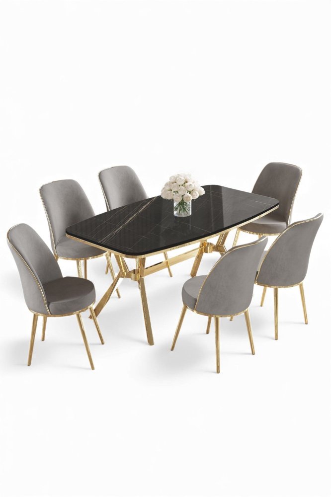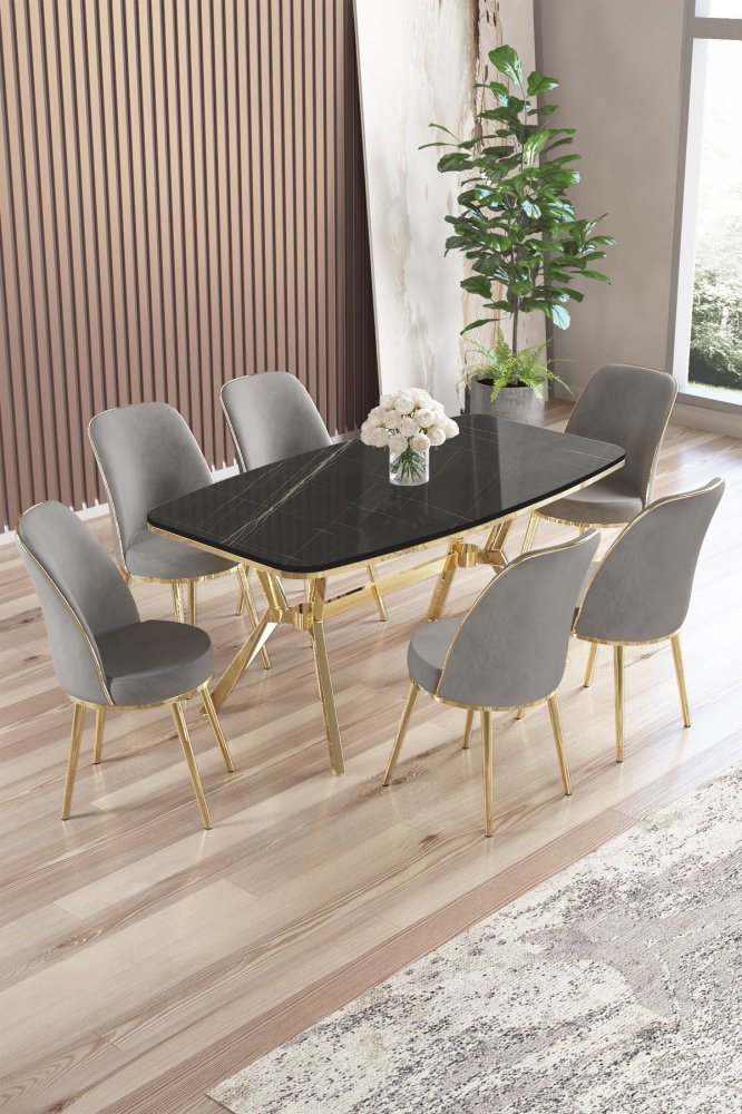 | Specifikacija | Set trpezarijskog stola i stolica (7 delova) Lena Black Marble Gold Grey 100% LAKOVANI PANEL Metalne nogare Okvir stolice: METAL Materijal: Mekana tkanina Trpezarijski sto: Širina: 160 cm Visina: 75 cm Dubina: 90 cm (1 komad) Stolica: Širina: 45 cm Visina: 91 cm Dubina: 42 cm (6 komada) Visina sedišta: 47 cm Visina nogara: 43 cm 22 DNS pena za leđa / 28 DNS pena za sedenje Broj pakovanja: 4 169 x 99,5 x 10,5 cm / 25,76 kg (1 komad) 37,5 x 80 x 19 cm / 7,58 kg (1 komad) 85 x 59 x 50 cm / 24 kg (1 komad) 62 x 48 x 56 cm / 12,5 kg (1 komad) |