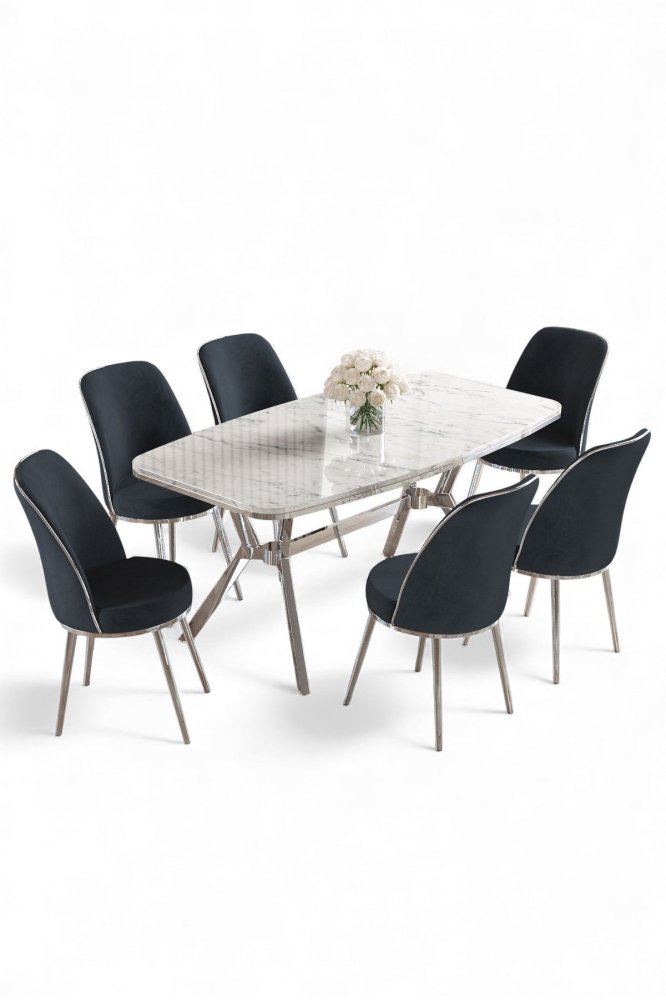 | Specifikacija | Set trpezarijskog stola i stolica (7 delova) Lena White Marble Chrome Anthracite 100% LAKOVANI PANEL Metalne nogare Okvir stolice: METAL Materijal: Mekana tkanina Trpezarijski sto: Širina: 160 cm Visina: 75 cm Dubina: 90 cm (1 komad) Stolica: Širina: 45 cm Visina: 91 cm Dubina: 42 cm (6 komada) Visina sedišta: 47 cm Visina nogara: 43 cm 22 DNS pena za leđa / 28 DNS pena za sedenje Broj pakovanja: 4 169 x 99,5 x 10,5 cm / 25,76 kg (1 komad) 37,5 x 80 x 19 cm / 7,58 kg (1 komad) 85 x 59 x 50 cm / 24 kg (1 komad) 62 x 48 x 56 cm / 12,5 kg (1 komad) |