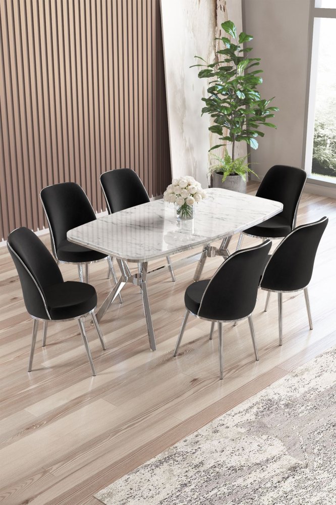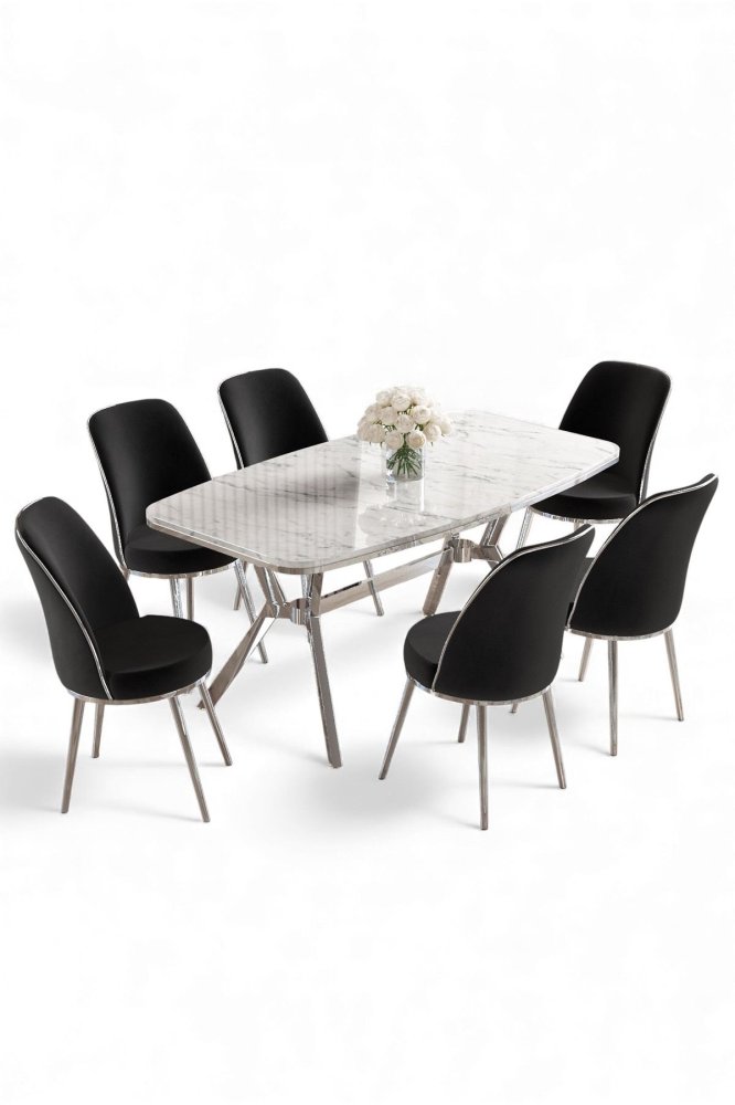 | Specifikacija | Set trpezarijskog stola i stolica (7 delova) Lena White Marble Chrome Black 100% LAKOVANI PANEL Metalne nogare Okvir stolice: METAL Materijal: Mekana tkanina Trpezarijski sto: Širina: 160 cm Visina: 75 cm Dubina: 90 cm (1 komad) Stolica: Širina: 45 cm Visina: 91 cm Dubina: 42 cm (6 komada) Visina sedišta: 47 cm Visina nogara: 43 cm 22 DNS pena za leđa / 28 DNS pena za sedenje Broj pakovanja: 4 169 x 99,5 x 10,5 cm / 25,76 kg (1 komad) 37,5 x 80 x 19 cm / 7,58 kg (1 komad) 85 x 59 x 50 cm / 24 kg (1 komad) 62 x 48 x 56 cm / 12,5 kg (1 komad) |