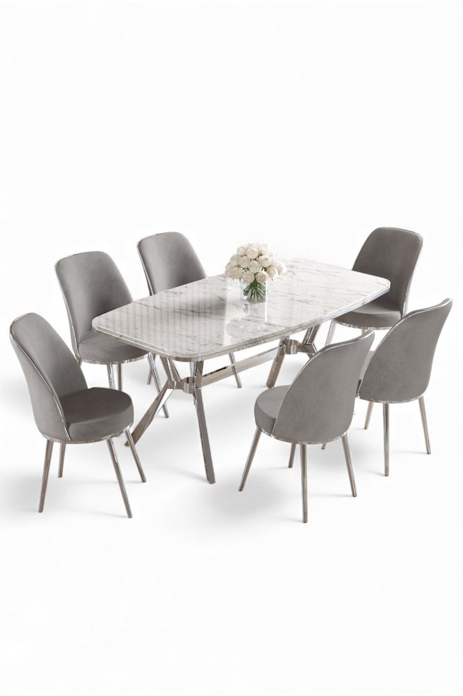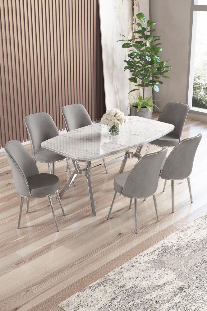 | Specifikacija | Set trpezarijskog stola i stolica (7 delova) Lena White Marble Chrome Grey 100% LAKOVANI PANEL Metalne nogare Okvir stolice: METAL Materijal: Mekana tkanina Trpezarijski sto: Širina: 160 cm Visina: 75 cm Dubina: 90 cm (1 komad) Stolica: Širina: 45 cm Visina: 91 cm Dubina: 42 cm (6 komada) Visina sedišta: 47 cm Visina nogara: 43 cm 22 DNS pena za leđa / 28 DNS pena za sedenje Broj pakovanja: 4 169 x 99,5 x 10,5 cm / 25,76 kg (1 komad) 37,5 x 80 x 19 cm / 7,58 kg (1 komad) 85 x 59 x 50 cm / 24 kg (1 komad) 62 x 48 x 56 cm / 12,5 kg (1 komad) |