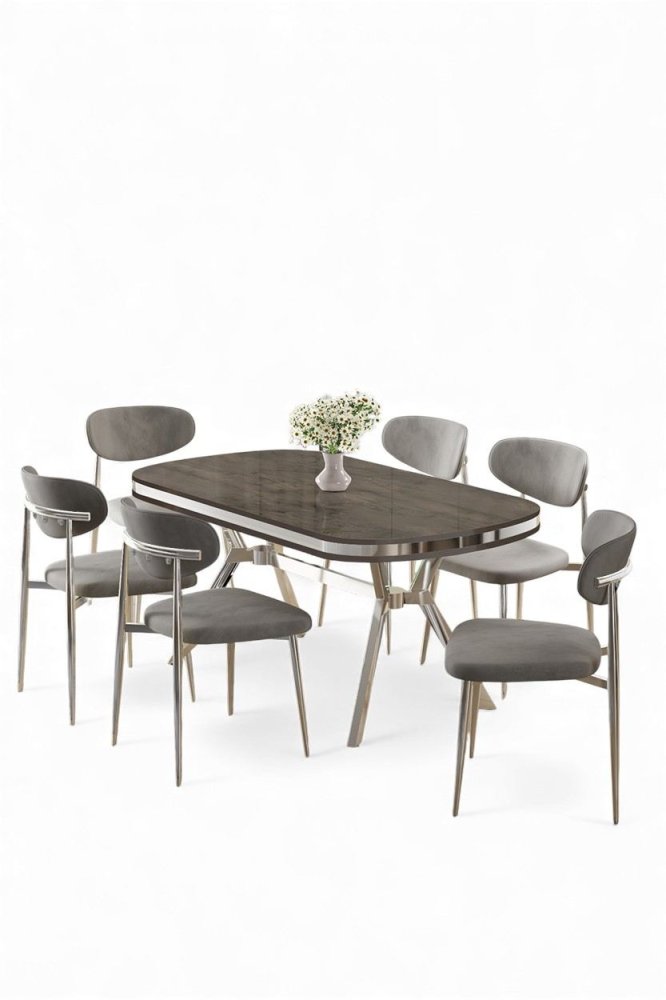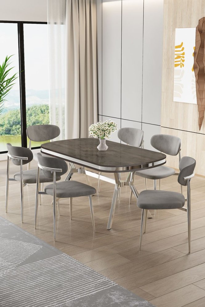 | Specifikacija | Set trpezarijskog stola i stolica (7 delova) Olya Anthracite Chrome Grey 100% LAKOVANI PANEL Metalne nogare Okvir stolice: ŠPERPLOČA / METAL Materijal: Mekana tkanina Trpezarijski sto: Širina: 168 cm Visina: 75 cm Dubina: 90 cm (1 komad) Stolica: Širina: 48 cm Visina: 84 cm Dubina: 49 cm (6 komada) Visina sedišta: 48 cm 22 DNS pena za leđa / 28 DNS pena za sedenje Broj pakovanja: 3 173 x 9 x 95 cm / 25 kg (1 komad) 37,5 x 80 x 19 cm / 7,58 kg (1 komad) 55 x 115 x 68 cm / 45 kg (1 komad) |