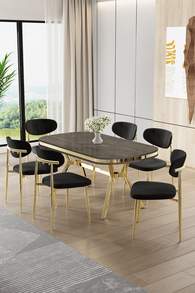 | Specifikacija | Set trpezarijskog stola i stolica (7 delova) Olya Anthracite Gold Black 100% LAKOVANI PANEL Metalne nogare Okvir stolice: ŠPERPLOČA / METAL Materijal: Mekana tkanina Trpezarijski sto: Širina: 168 cm Visina: 75 cm Dubina: 90 cm (1 komad) Stolica: Širina: 48 cm Visina: 84 cm Dubina: 49 cm (6 komada) Visina sedišta: 48 cm 22 DNS pena za leđa / 28 DNS pena za sedenje Broj pakovanja: 3 173 x 9 x 95 cm / 25 kg (1 komad) 37,5 x 80 x 19 cm / 7,58 kg (1 komad) 55 x 115 x 68 cm / 45 kg (1 komad) |