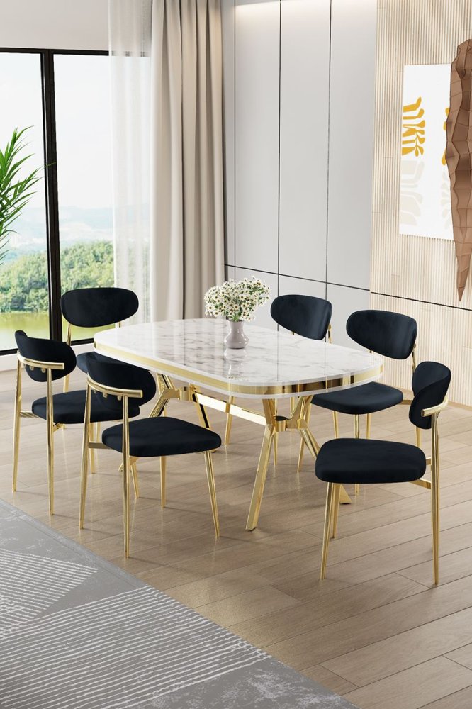 | Specifikacija | Set trpezarijskog stola i stolica (7 delova) Olya White Marble Gold Anthracite 100% LAKOVANI PANEL Metalne nogare Okvir stolice: ŠPERPLOČA / METAL Materijal: Mekana tkanina Trpezarijski sto: Širina: 168 cm Visina: 75 cm Dubina: 90 cm (1 komad) Stolica: Širina: 48 cm Visina: 84 cm Dubina: 49 cm (6 komada) Visina sedišta: 48 cm 22 DNS pena za leđa / 28 DNS pena za sedenje Broj pakovanja: 3 173 x 9 x 95 cm / 25 kg (1 komad) 37,5 x 80 x 19 cm / 7,58 kg (1 komad) 55 x 115 x 68 cm / 45 kg (1 komad) |