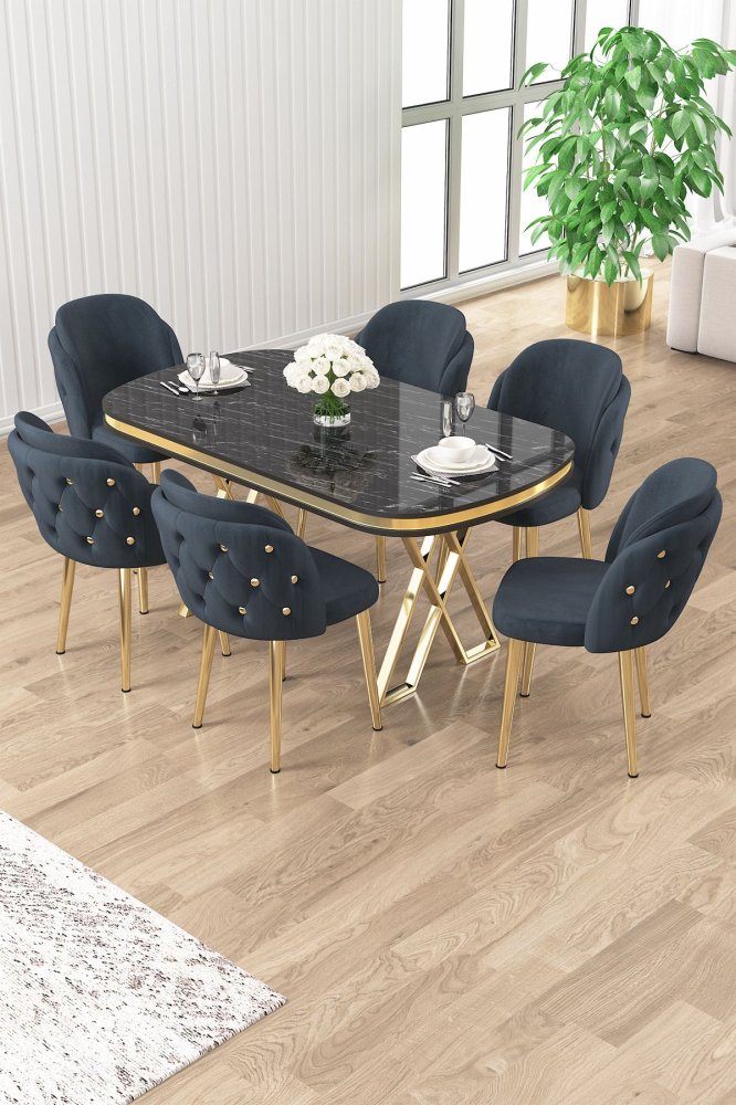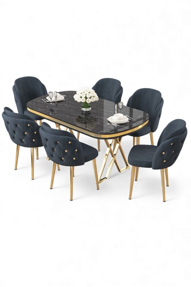 | Specifikacija | Set trpezarijskog stola i stolica (7 delova) Zae Black Marble Gold Anthracite 100% LAKOVANI PANEL Metalne nogare Okvir stolice: ŠPERPLOČA / METAL Materijal: Mekana tkanina Trpezarijski sto: Širina: 168 cm Visina: 76 cm Dubina: 60 cm (1 komad) Stolica: Širina: 45 cm Visina: 82 cm Dubina: 46 cm (6 komada) Visina sedišta: 48 cm 22 DNS pena za leđa / 28 DNS pena za sedenje Broj pakovanja: 5 173 x 9 x 95 cm / 25 kg (1 komad) 11 x 75 x 62 cm / 6 kg (1 komad) 85 x 59 x 50 cm / 26 kg (1 komad) 62 x 48 x 56 cm / 12 kg (1 komad) 62 x 48 x 56 cm / 14 kg (1 komad) |