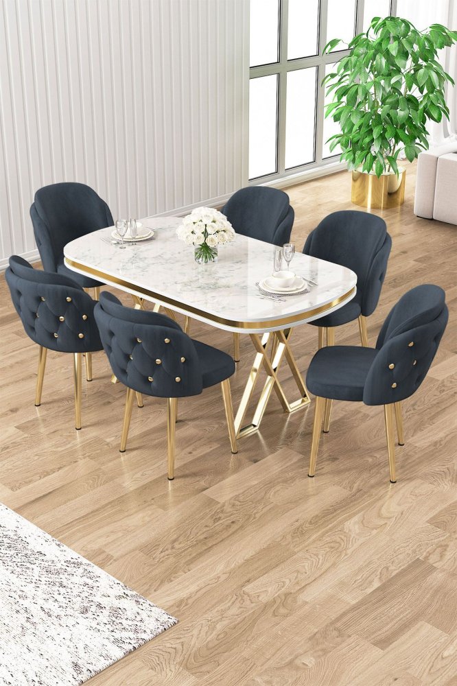 | Specifikacija | Set trpezarijskog stola i stolica (7 delova) Zae White Marble Gold Anthracite 100% LAKOVANI PANEL Metalne nogare Okvir stolice: ŠPERPLOČA / METAL Materijal: Mekana tkanina Trpezarijski sto: Širina: 168 cm Visina: 76 cm Dubina: 60 cm (1 komad) Stolica: Širina: 45 cm Visina: 82 cm Dubina: 46 cm (6 komada) Visina sedišta: 48 cm 22 DNS pena za leđa / 28 DNS pena za sedenje Broj pakovanja: 5 173 x 9 x 95 cm / 25 kg (1 komad) 11 x 75 x 62 cm / 6 kg (1 komad) 85 x 59 x 50 cm / 26 kg (1 komad) 62 x 48 x 56 cm / 12 kg (1 komad) 62 x 48 x 56 cm / 14 kg (1 komad) |