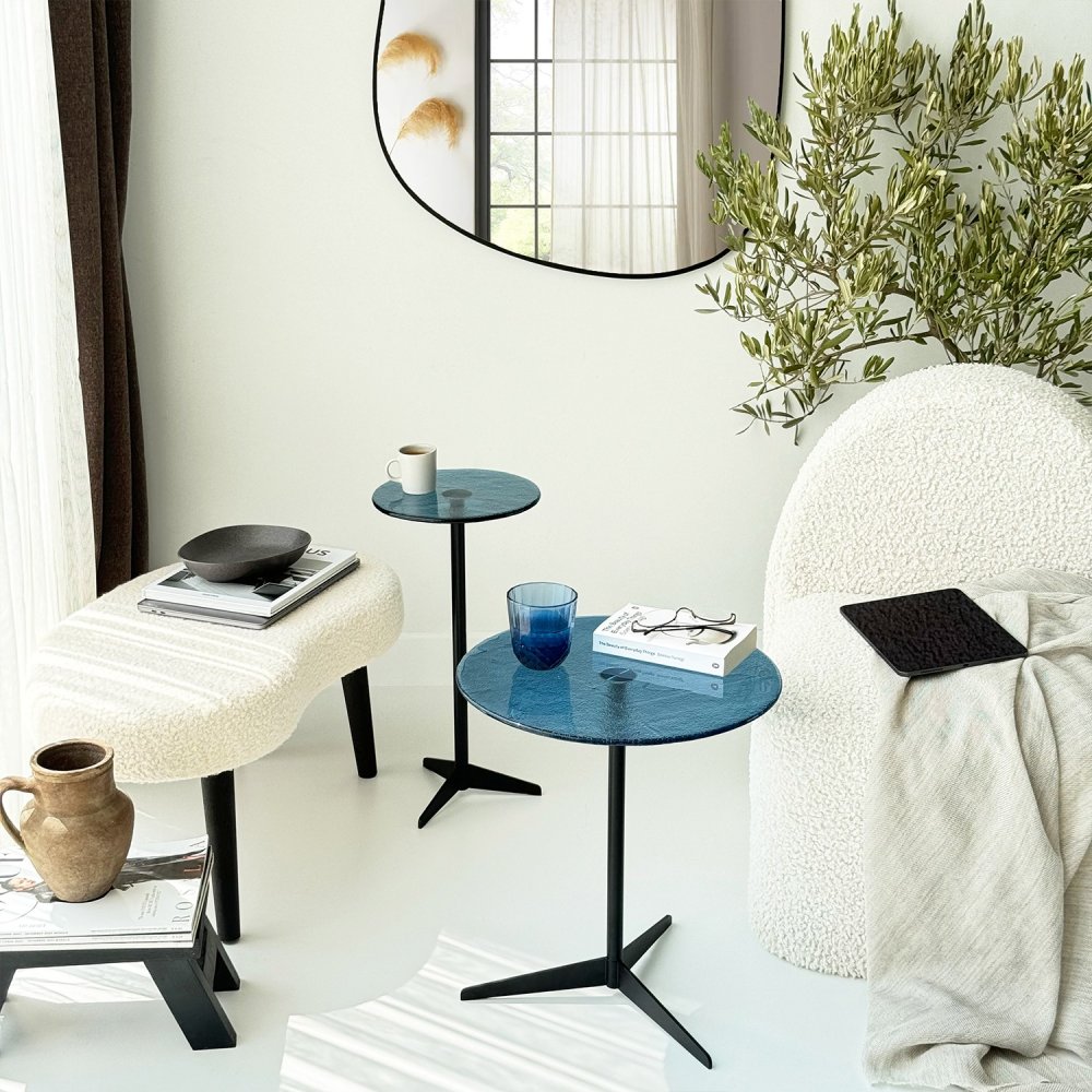 Specifikacija | Solis Black Blue Set Set bočnih stolova 100% KALJENO STAKLO Okvir: 100% METAL Širina: 40 cm Visina: 45 cm Dubina: 40 cm (1 komad) Širina: 25 cm Visina: 50 cm Dubina: 25 cm (1 komad) Zagarantovana sva prava po Zakonu o zaštiti potrošača. Tačan podatak o uvozniku i zemlji porekla je naveden na deklaraciji proizvoda. |