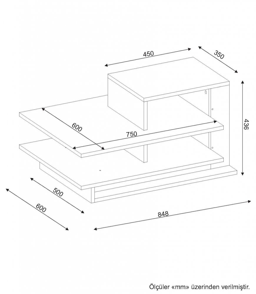 Specifikacija | Sto za dnevnu sobu Materijal: 100% Iverica presvučena melaminom Debljina iverice: 18 mm Dimenzije: Širina: 84,8 cm Visina: 43,6 cm Dubina: 60 cm Dimenzije gornje police: Širina: 45 cm Dubina: 35 cm Dimenzije srednje police: Širina: 75 cm Dubina: 60 cm Napomena: Višenamenski sto; Dodatni prostor za odlaganje Broj paketa za isporuku: 1 81 x 65,5 x 13,8 cm / 24,3 kg |