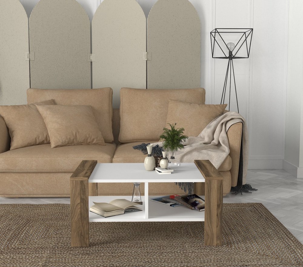 Dopunite svoj dnevni boravak s modernim stolom za kafu Erica. S kombinacijom bele i orah boje, ovaj sto će uneti svežinu i eleganciju u vaš prostor.