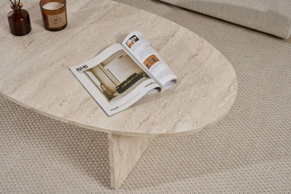 Sto za kafu „Orba Travertine” kombinuje funkcionalnost, moderan dizajn i sofisticirani izgled prirodnog kamena. Njegova stabilna konstrukcija i dekor Travertine čine ga idealnim izborom za moderan i elegantan dnevni boravak.