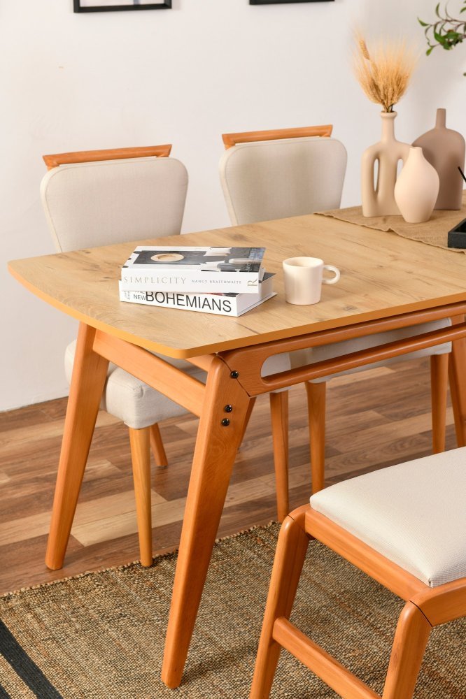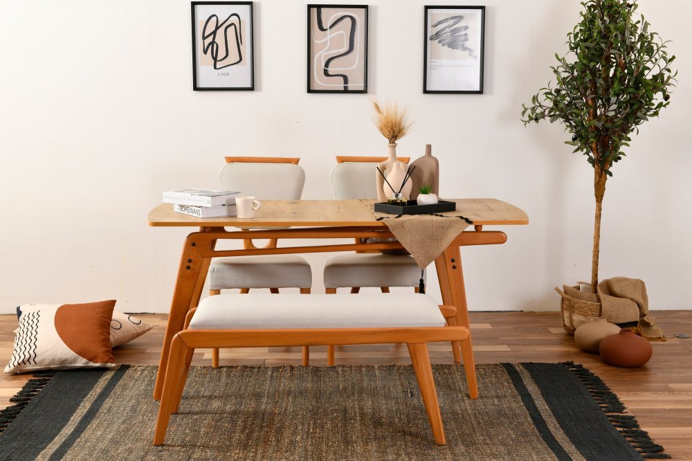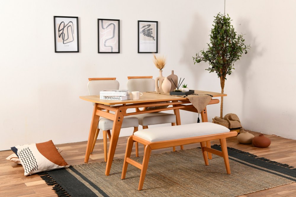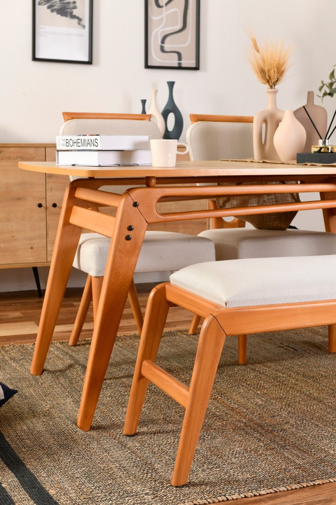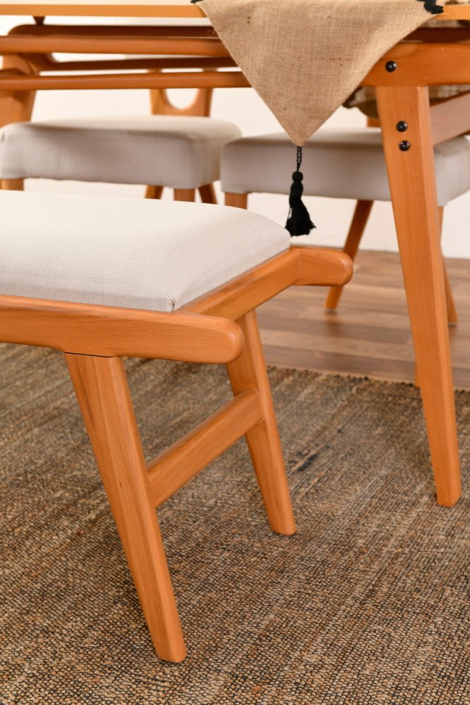 Specifikacija | Trpezarijski set Materijal: 100% Drvo (grab) Debljina: 18 mm Materijal tkanine: Laneno platno; Nubuck tkanina Dimenzije stola: Širina: 78 cm Dužina: 160 cm Visina: 77 cm Dimenzije klupe: Širina: 105 cm Dubina: 40 cm Visina: 48 cm Dimenzije stolice: Visina: 92 cm Širina: 48 cm Dubina: 51 cm Težina: 6,6 kg Broj stolica u setu: 2 |