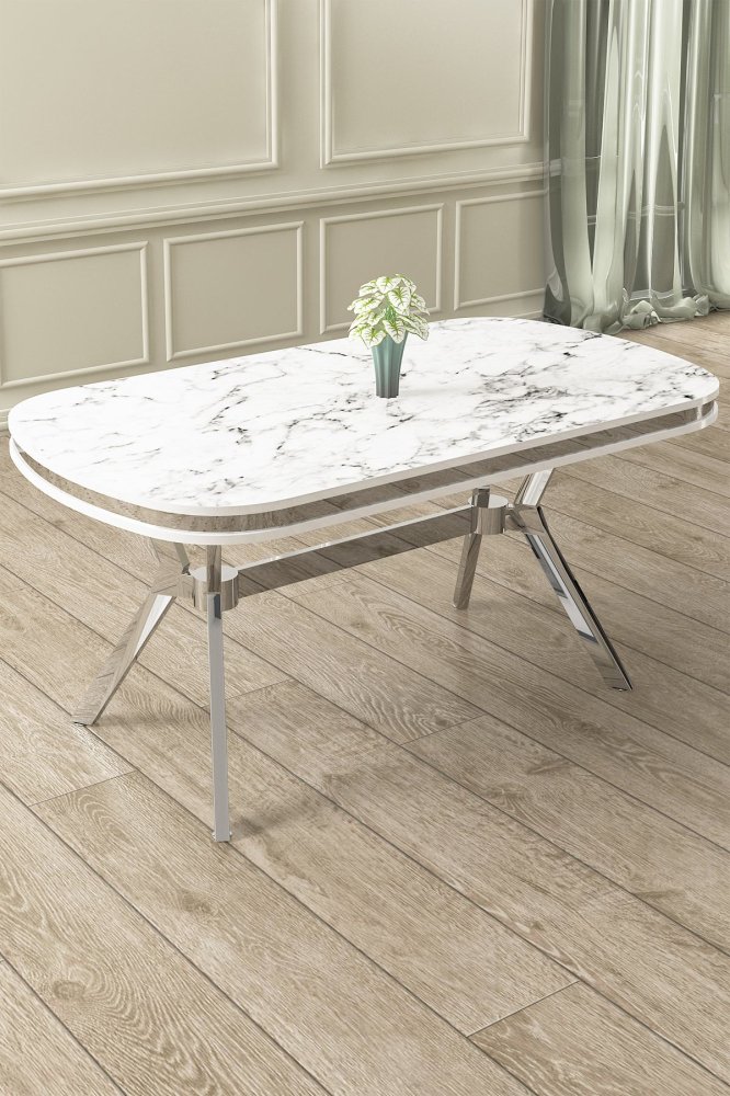 Specifikacija Trpezarijski sto Olya White Marble Chrome