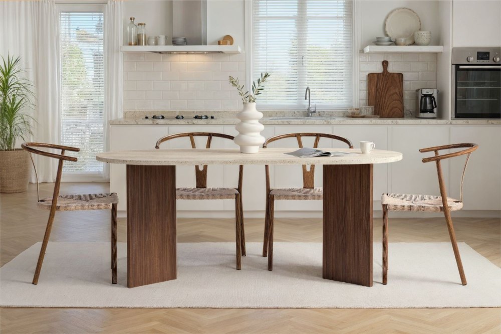 HANAH HOME Trpezarijski sto Sablin Travertine Milano Orah