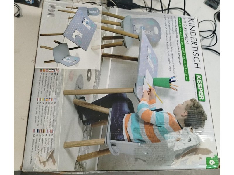 | Specifikacija | Materijal: ploča od vlakana i borovo drvo. Noge stola i stolica su prekrivene drvenim ukrasnim filmom. Neophodna montaža. Lako se čisti. Laka konstrukcija. Dimenzije: Sto - 55 x55 x 45 cm Stolice: 27,5 x 27,5 x 50,5 cm Boja: siva sa motivima |